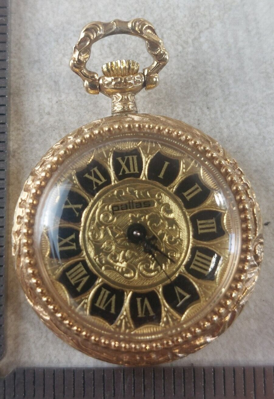 Antique pocket watch, mechanical, Pallas marked Pallas in good to very good condition, tested for 24 hours, keeps time, width excluding crown 2.5 cm, see photos. Check out my other items! Shipping cost reduction for combined purchases. Condition: Used item that has been worn, may have imperfections. Brand: Pallas Type: Pocket watch Department: Adult unisex.