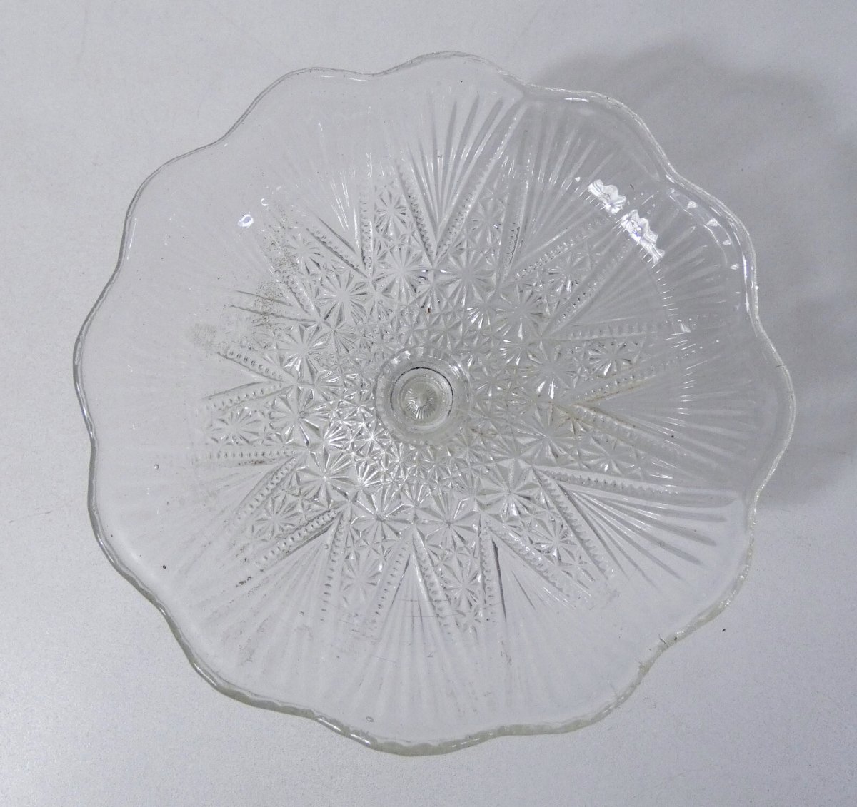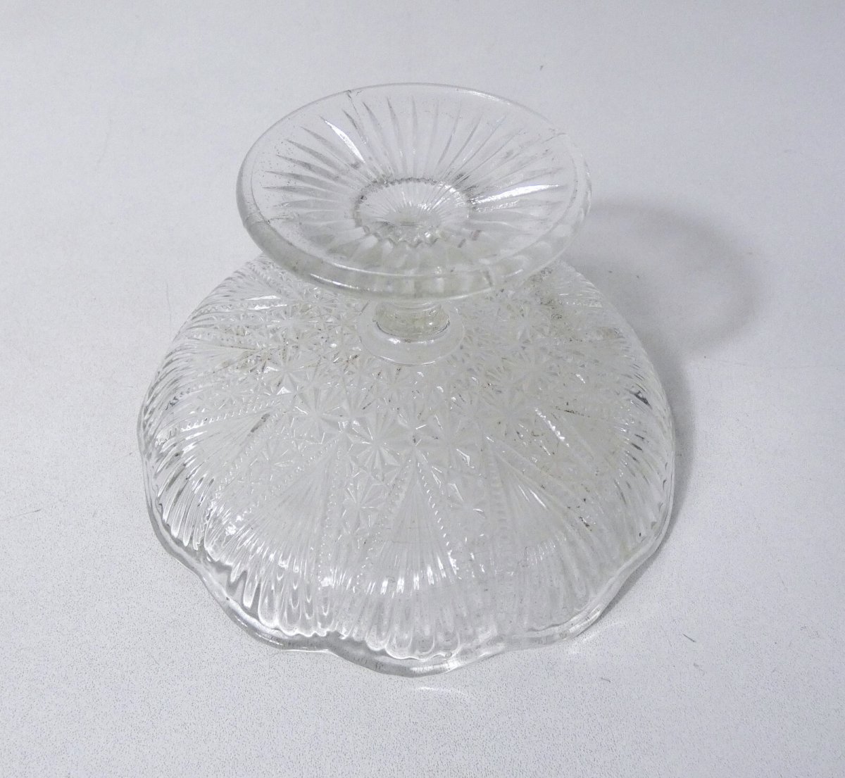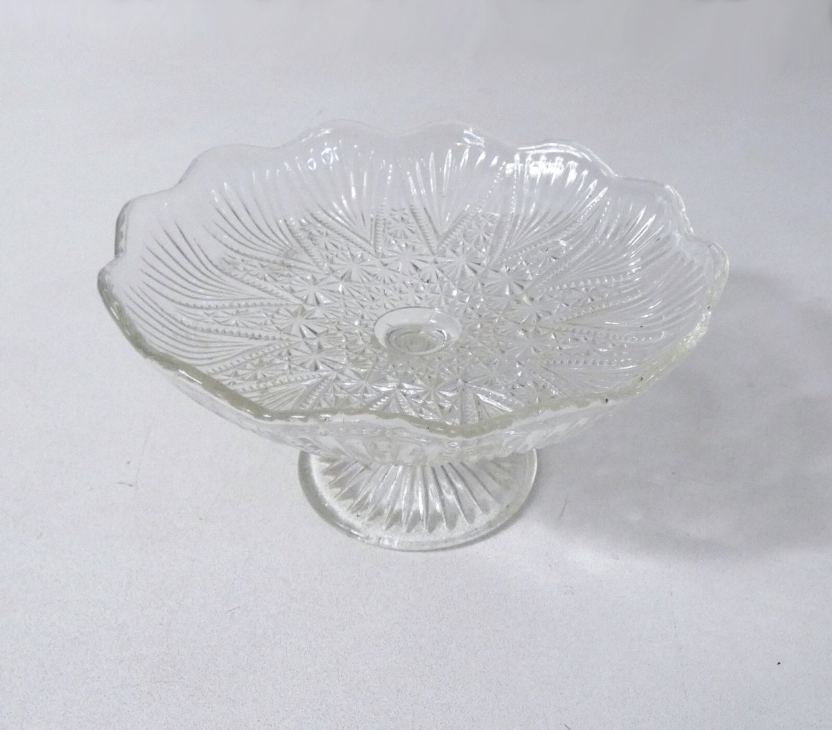 Elegant footed dish in pressed molded glass, typical of the late 19th / early 20th century. Ribbed patterns and wavy edge, with a lovely play of light in the clear glass. Perfect as a cake display, candy dish, or refined catch-all. ? Dimensions: Height: 10 cm Diameter: 17 cm ? Good vintage condition, no chips. ? Fast and very careful shipping. Condition: Used item that has been used. Item shows some superficial wear marks, fully operational and working correctly. It may be a demonstration model or an item returned to the store after a short period of use. Possible imperfections. Type: Bowl Material: Ceramic Country of origin: Metropolitan France.