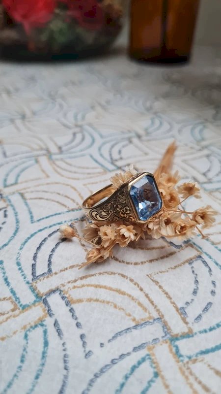 Above €25, please choose a carrier if possible. Take advantage of the bulk discount: 5 items -10%, 10 items -20%, 20 items -30%. Please look closely at the photos to see any imperfections. No sale of this jewelry for profiles with less than 15 evaluations or too many negative evaluations. Hallmark 8 carats and sapphire. Dimensions height - width: 1.4 / 1 cm, size: 64 / 24 or 20.5. #ring #vintage #chic #gift #sapphirering #goldring #jewelry #antique ring #sapphire #gold...
