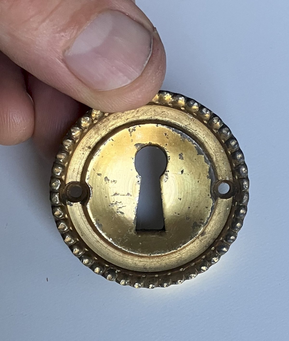 old round lock entry in solid bronze brass louis XVI style diameter 40 mm thickness 5 mm weight 32 g good overall condition - minor signs of use shipping by tracked letter Material: Brass Style: Louis XVI