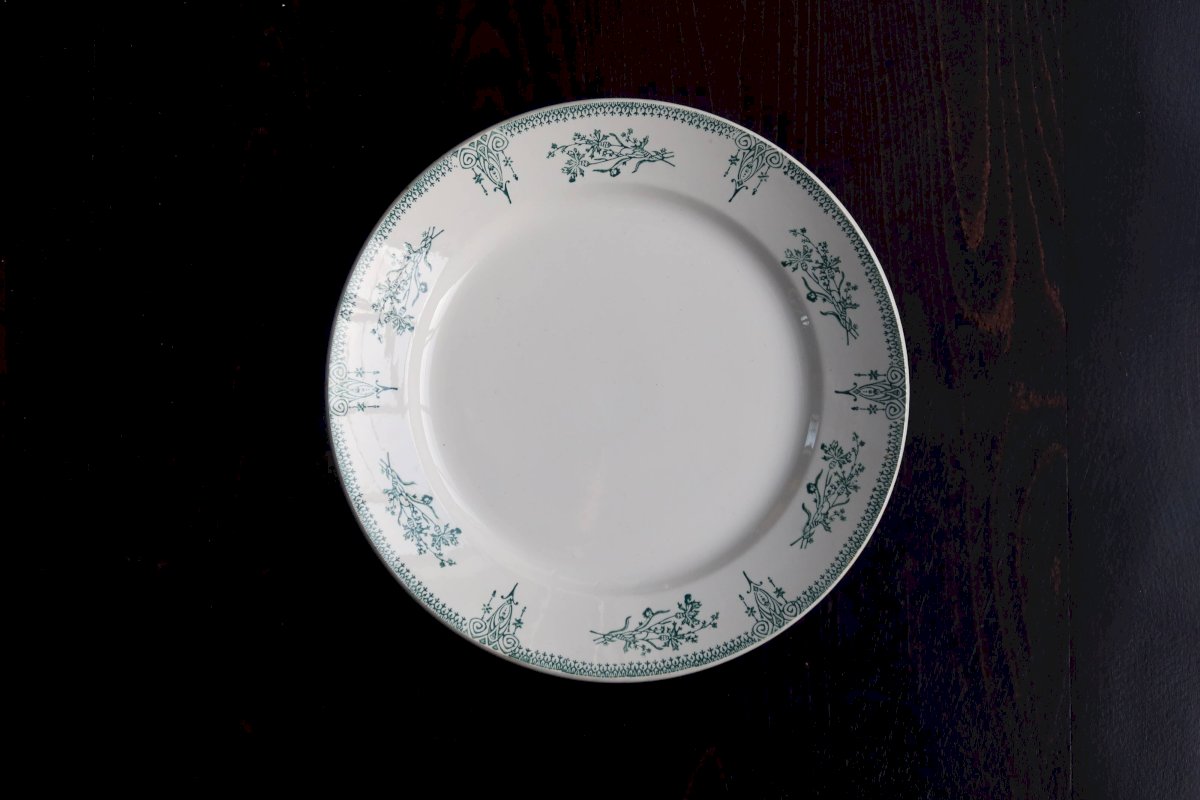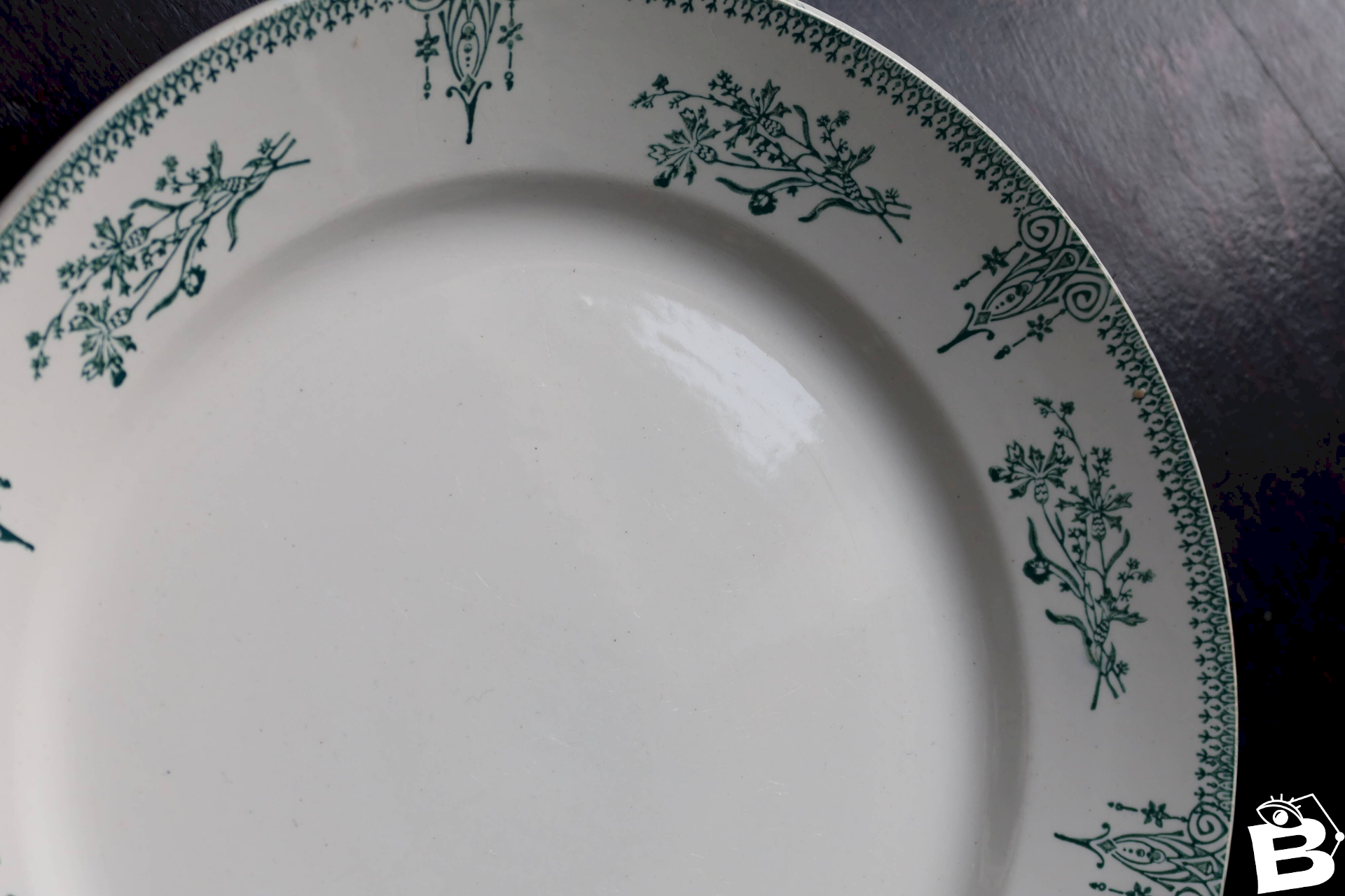 Antique round serving dish, Saint Amand ironstone - 19th century - Green pattern White