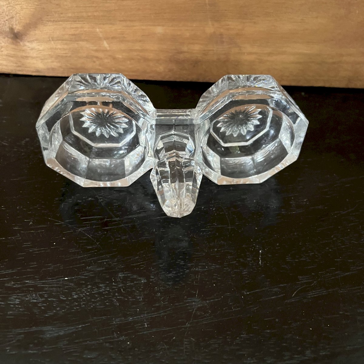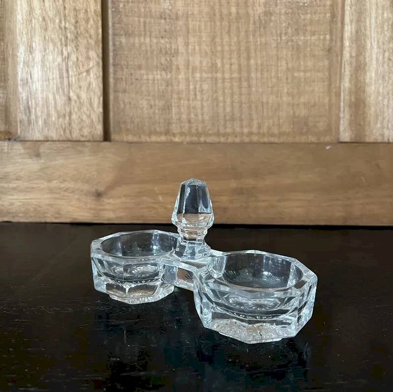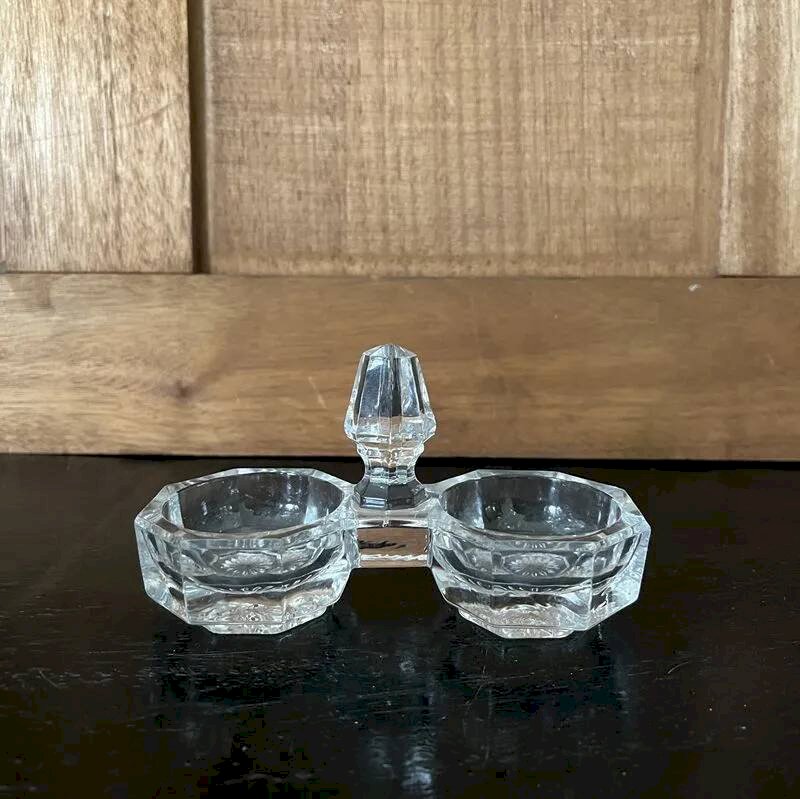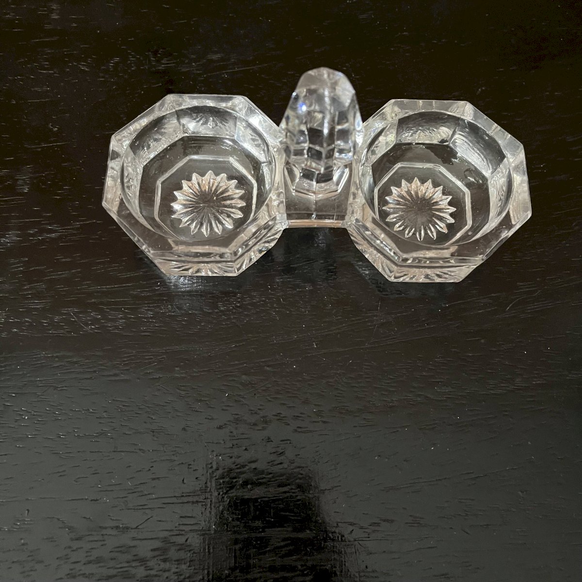 With its double octagonal bowls, this double salt cellar will stylishly hold salt and pepper or other spices.