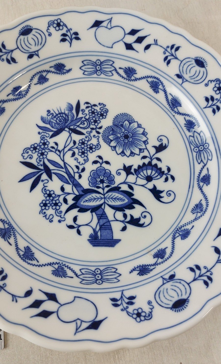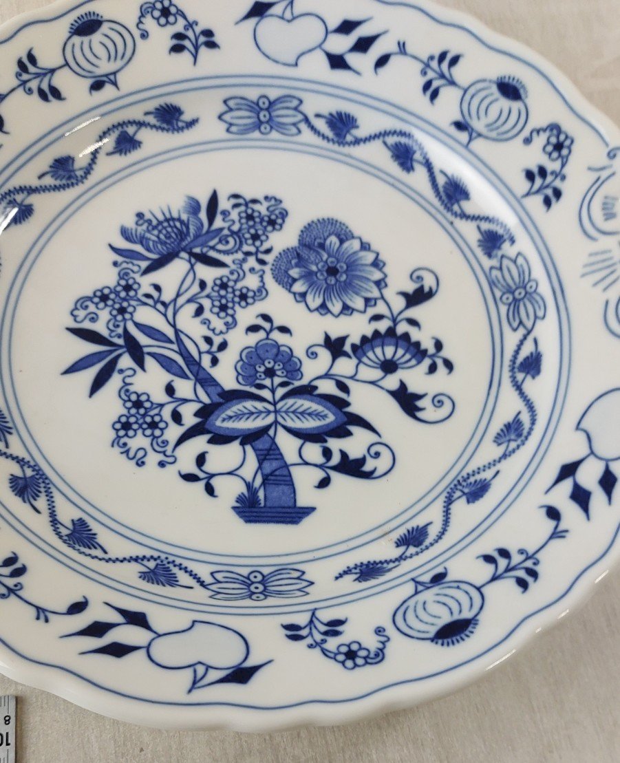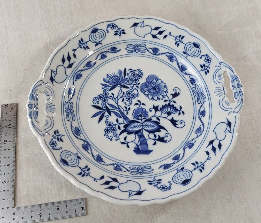 Vintage serving plate, Blue Onion pattern / onion flowers / Zwiebelmuster, made of Czechoslovak porcelain, Meissen style in very good condition, no cracks or chips, diameter 26.2 cm, height 4 cm, see photos. Check out my other items! Reduced shipping costs for combined purchases.