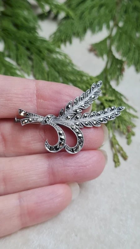 Above €25, please choose the carrier if possible. Take the opportunity to buy in bulk: 5 items - 10% 10 items - 20% 20 items - 30%. Be sure to check the photos for imperfections. Width: 4.3 cm Height: 2.9 cm #antiquebrooch #wheatspikebrooch #gift #chic #collection #vintage #jewelry #brooch #wheatspike #silverbrooch #marcasitebrooch #marcasite...