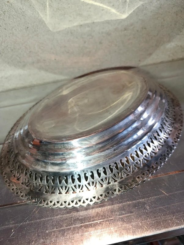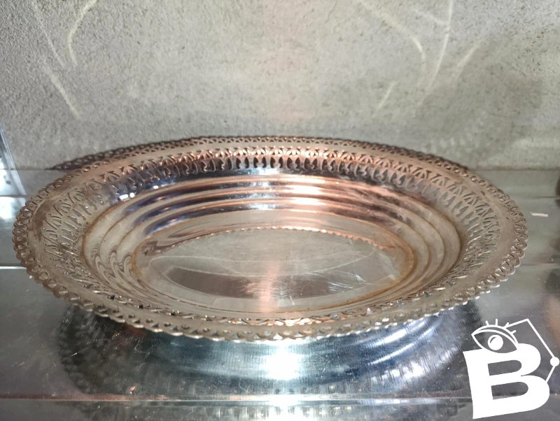 antique silver-plated metal basket stamp St. Medard in good condition