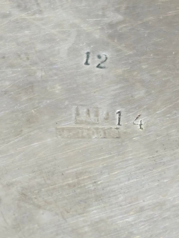 Antique pewter pitcher with floral decoration signed Pelizoy? In fair condition