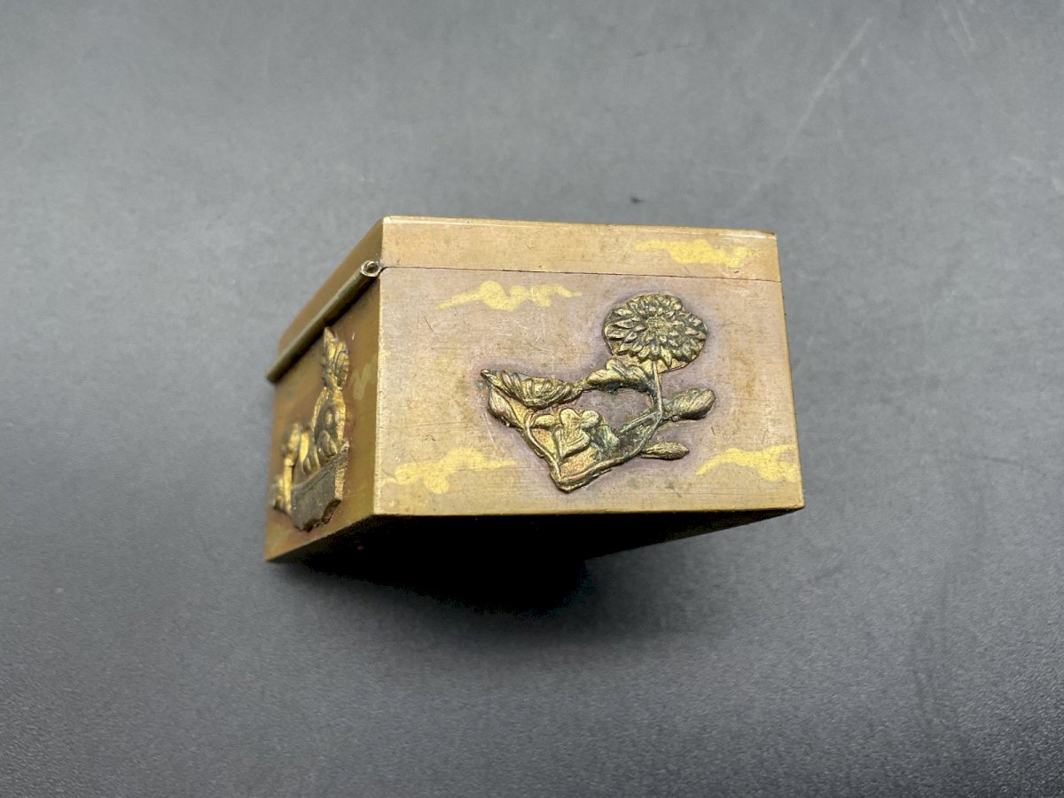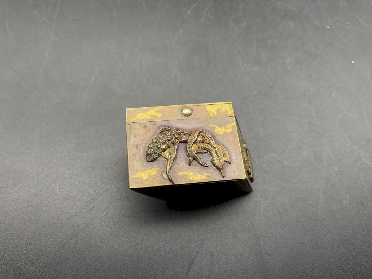antique snuff box 19th century JAPAN BRONZE MEIJI 1880 Lengths: 5.4 cm Width: 3.6 cm Height: 2.6 cm