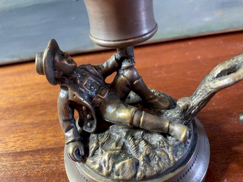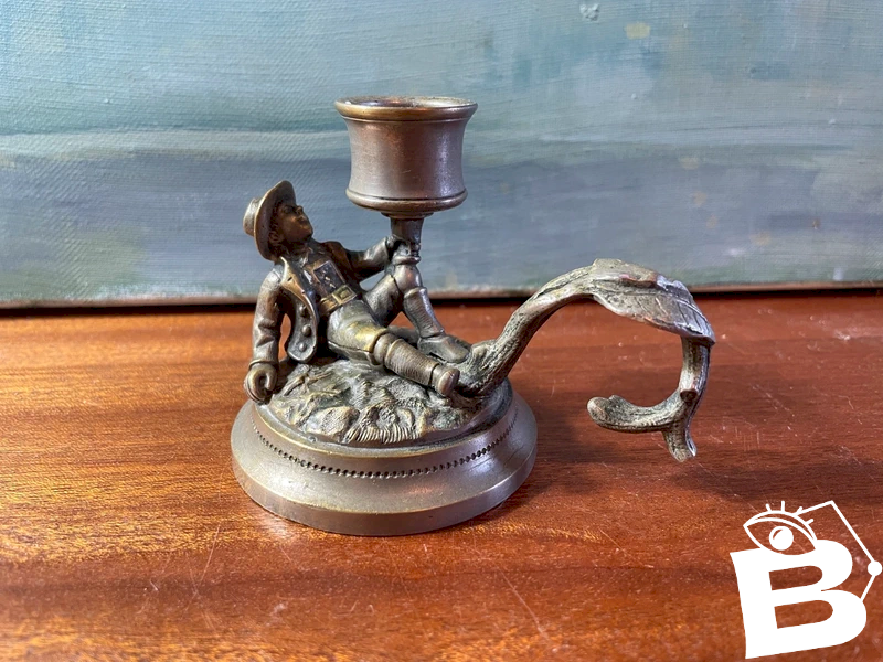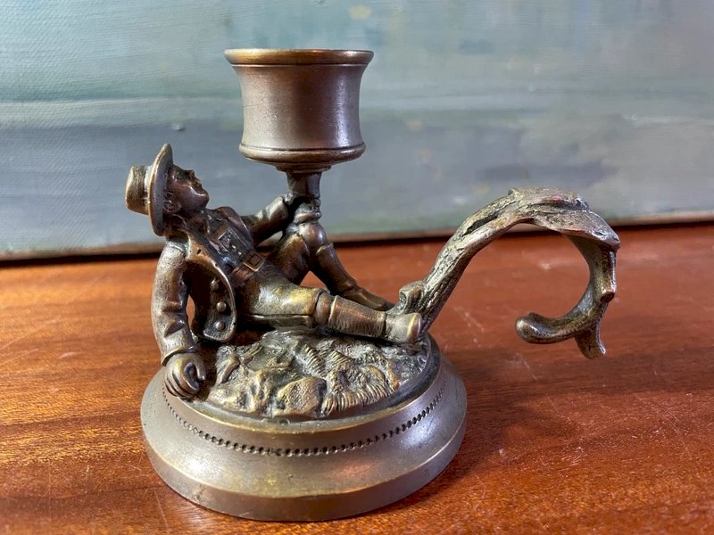-OLD BRONZE CANDLEHOLDER THOMAS FOUNDRY 16590 BRIE CHARENTE deco XXth D