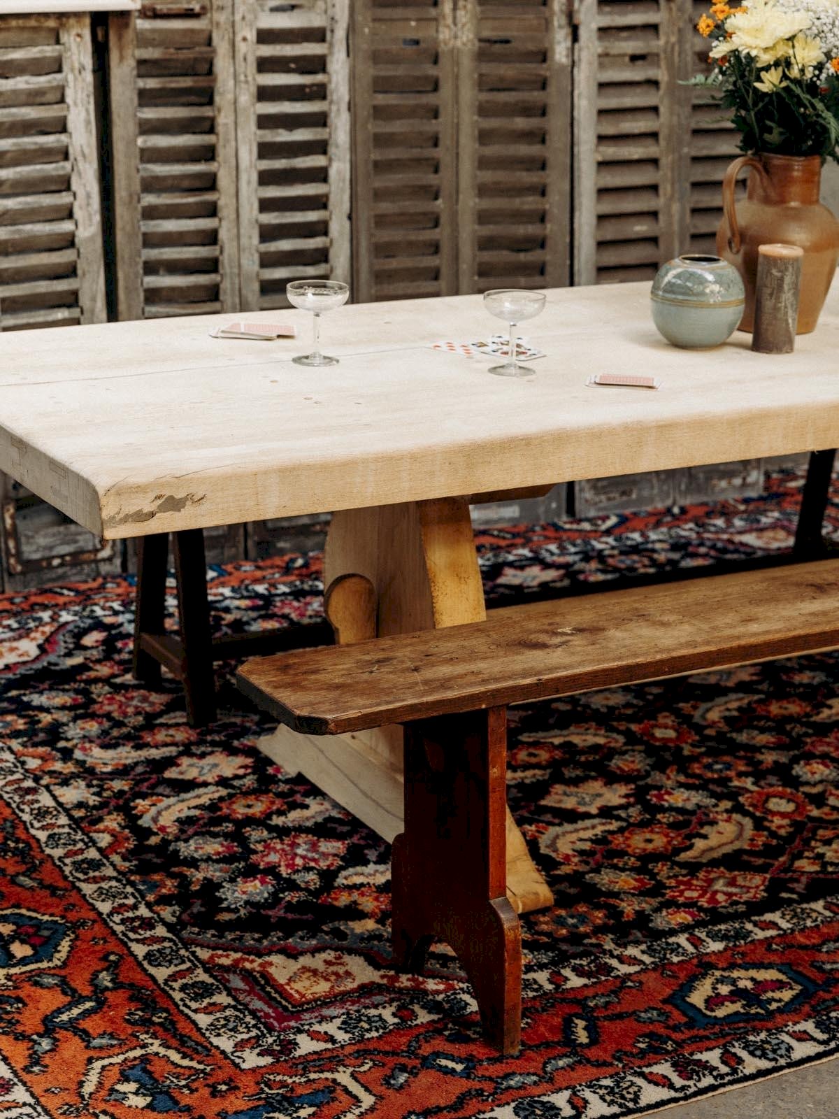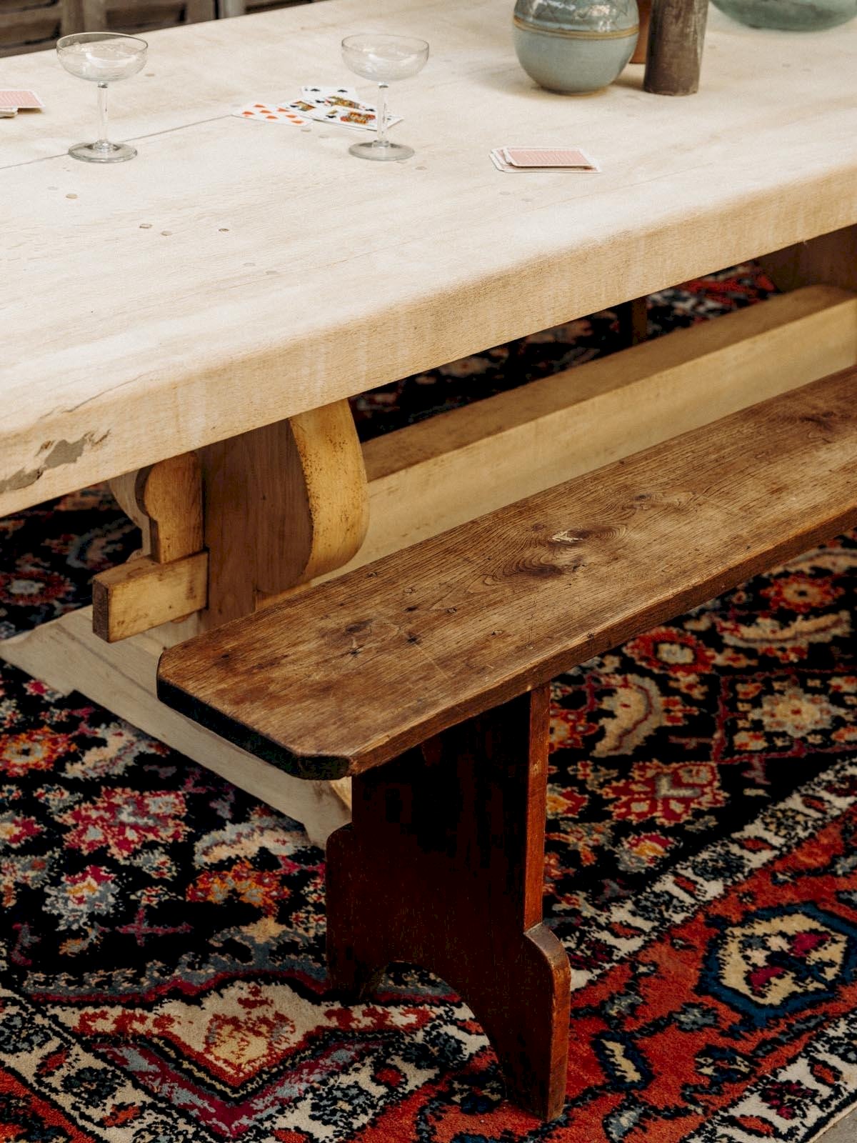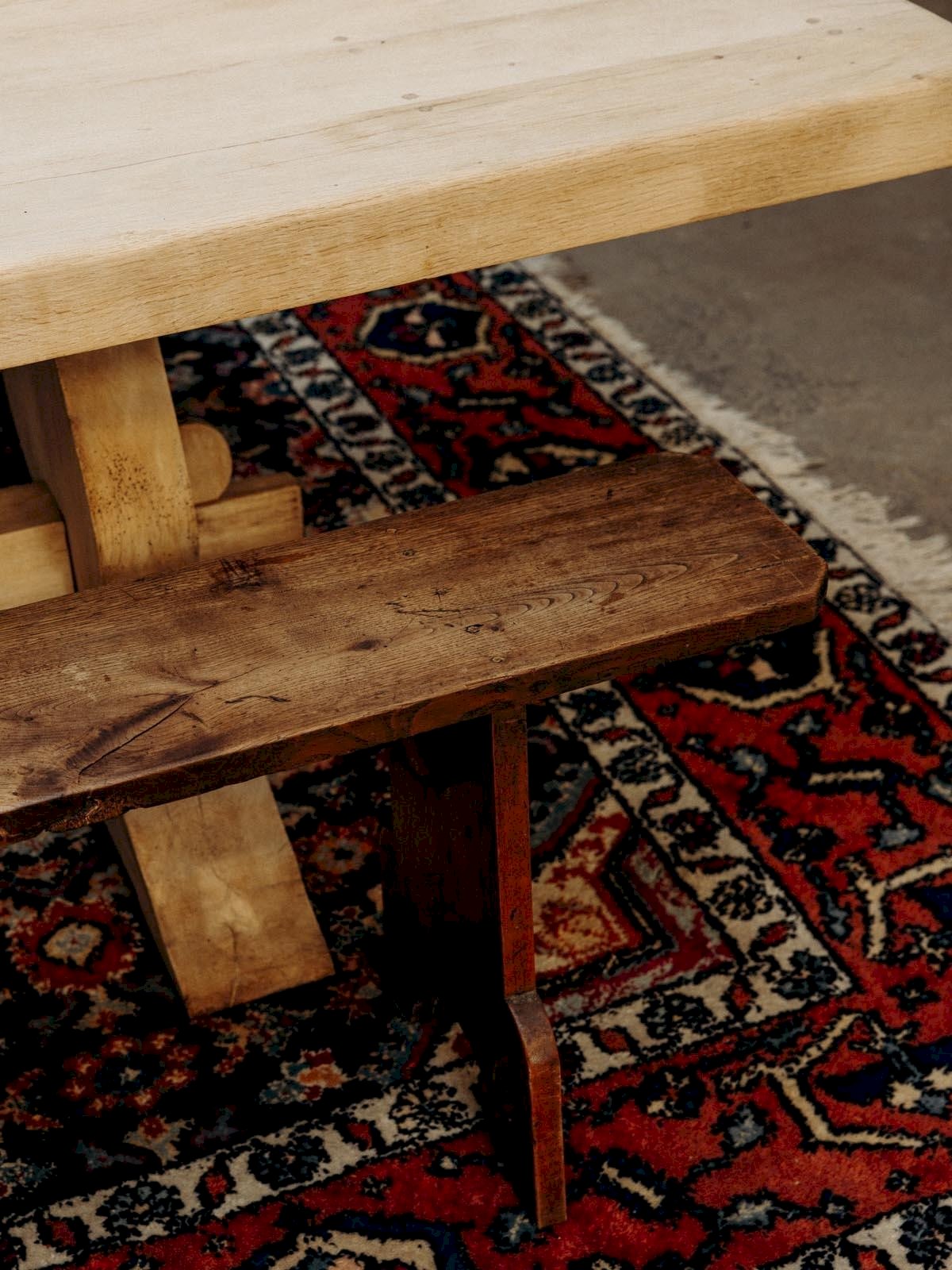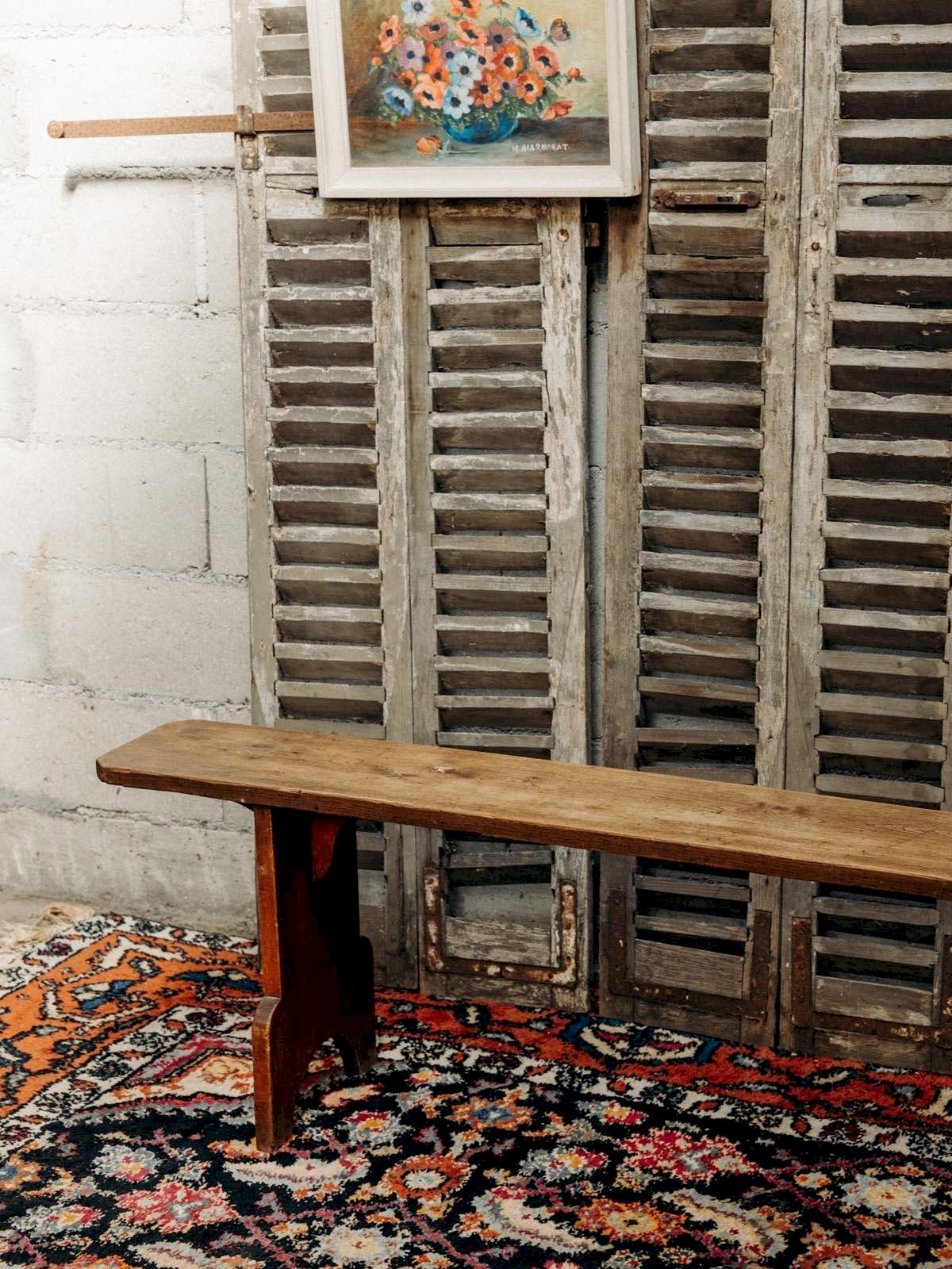 Discover our wooden bench with authentic charm, featuring two intricately designed legs and a decorative hole. With its slight wear that tells its story, this dark wood furniture piece adds a vintage touch to your interior. Its curved design and lower bar ensure both comfort and stability. Perfect for completing your decor, this bench will be a highlight of your living space. Length: 214 cm Width: 24 cm Height: 49 cm Condition: Used: Item that has been used. Item showing some superficial wear marks, fully operational and functioning correctly. It may be a demonstration model or an item returned to the store after a short period of use. Any potential imperfections. Color: Multicolor Height: Wood Width: Benches Brand: Debongout Type: Thrifted product Material: Wood Style: Country