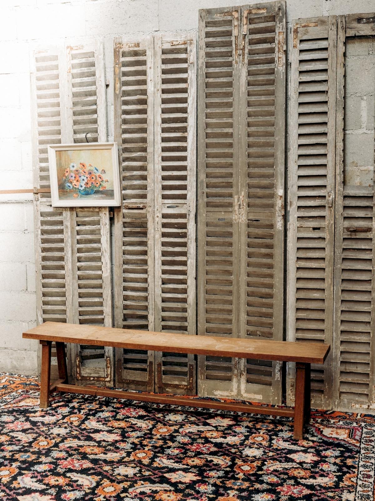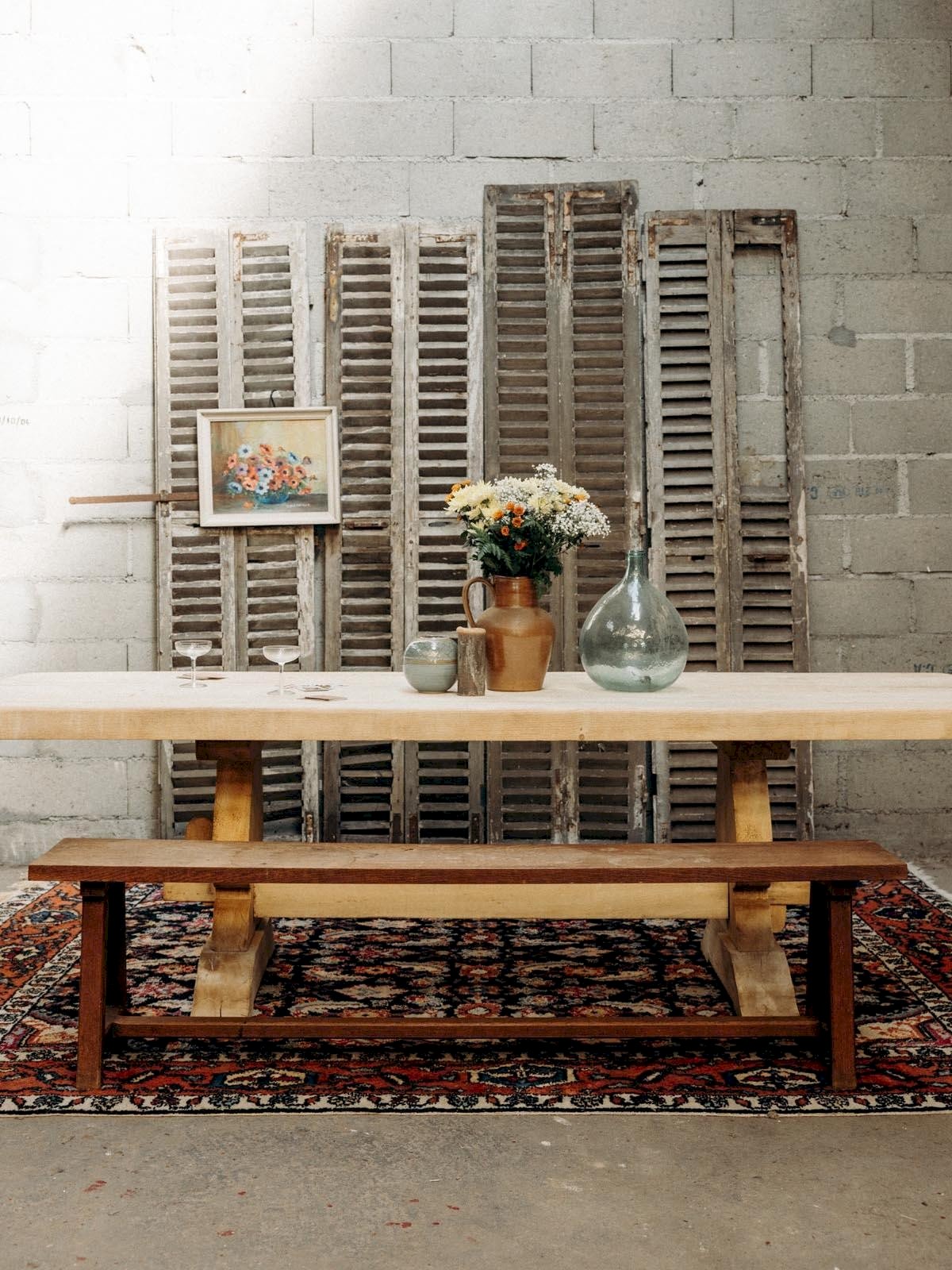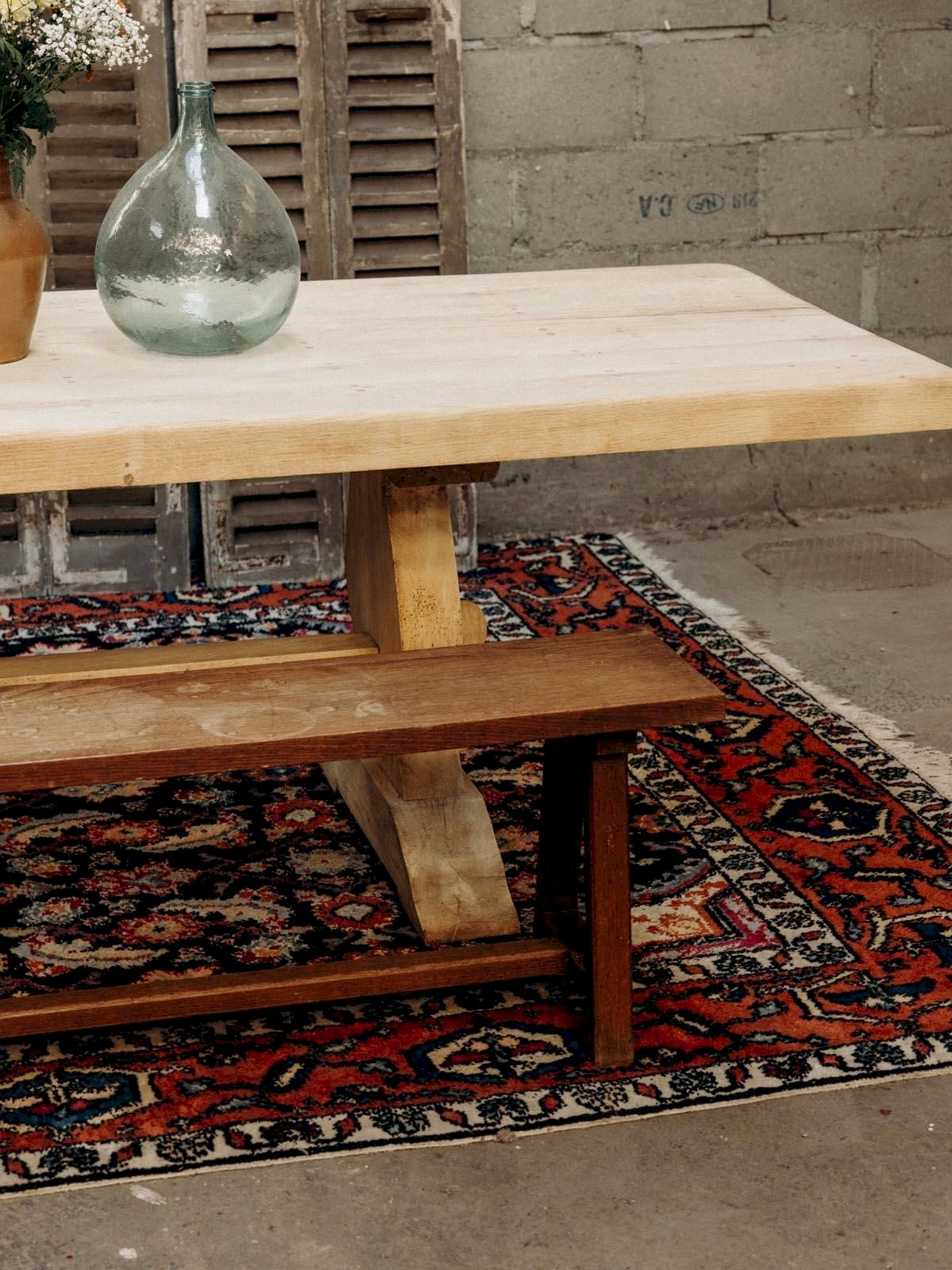 Add a touch of authenticity to your interior with this refined wooden bench. Featuring two intricately designed legs, this piece showcases signs of wear that speak to its history while retaining a timeless charm. Its dark hue and straight edges blend perfectly with various decorative styles, giving your space a warm and elegant appearance. An ideal choice for creating a cozy corner in your living room or hallway. Length: 180 cm Width: 29 cm Height: 46 cm Condition: Used: An item that has been used. Item showing some signs of superficial wear, fully operational and functioning correctly. It may be a demonstration model or an item returned to the store after a short period of use. any possible imperfections. Color: Multicolor Height: Wood Width: Benches Brand: Debongout Type: Vintage product Material: Wood Style: Country