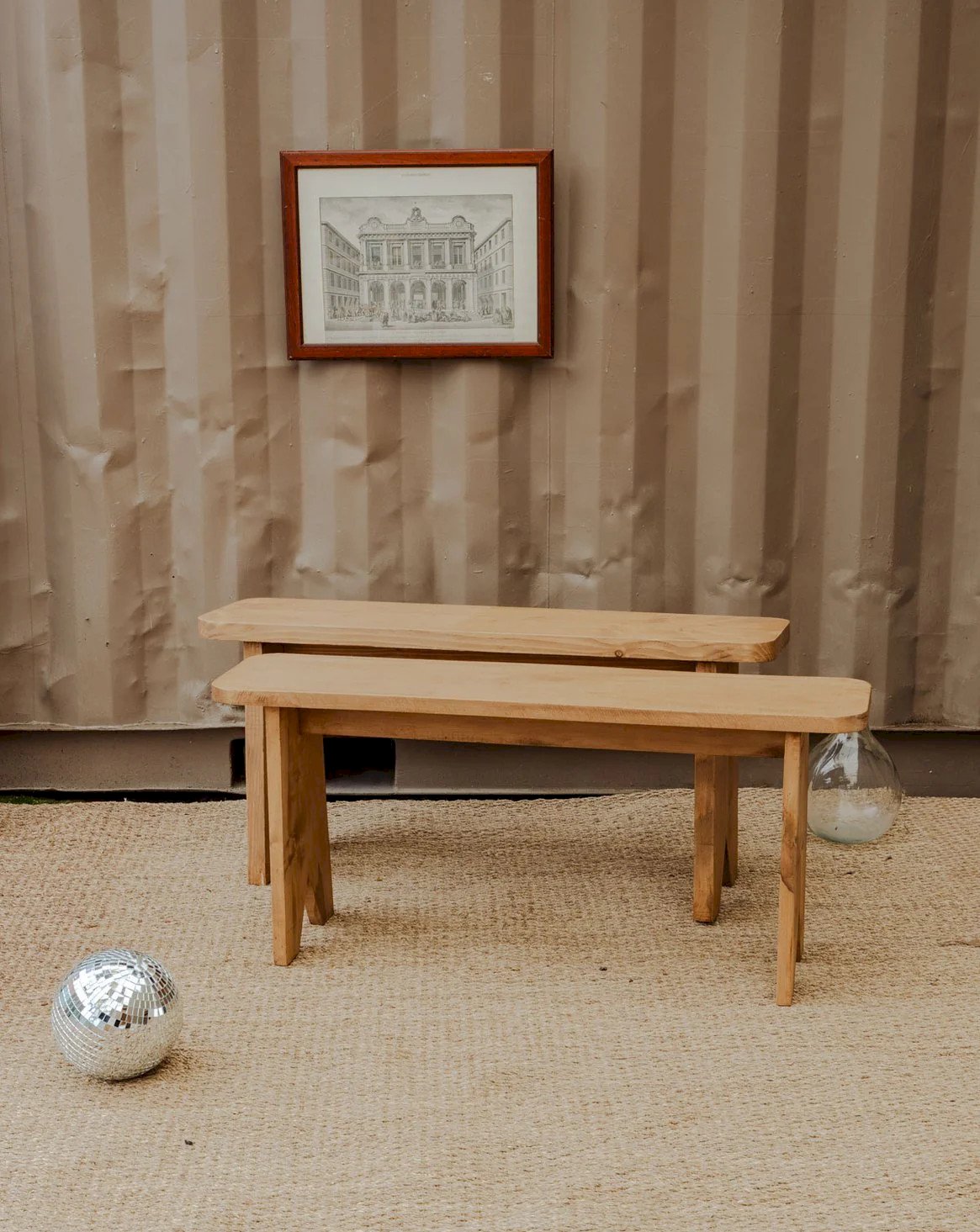 Adopt this vintage wooden bench, with clean lines and a soft patina that brings a warm and natural touch to your interior. Its length allows for seating two people, while its profile makes it ideal for a hallway, an entrance, or at the foot of a bed. Two pieces available, with slightly different heights that offer a harmonious and modular presence. Some signs of time that tell their story. Length: 110 cm Width: 28 cm Height: 53 cm Condition: Used: Item that has been used. Item showing some superficial signs of wear, ...Used: Item that has been used. Item showing some superficial signs of wear, fully operational and functioning correctly. It may be a demonstration model or a returned item after a short period of use. Any possible imperfections. Color: Multicolored Height: Wood Width: Benches Brand: Debongout Type: Vintage product Material: Wood Style: Country