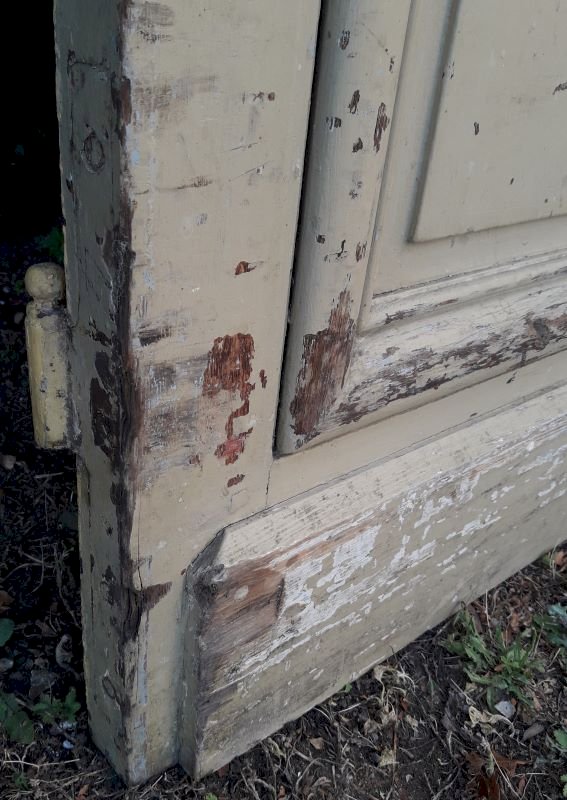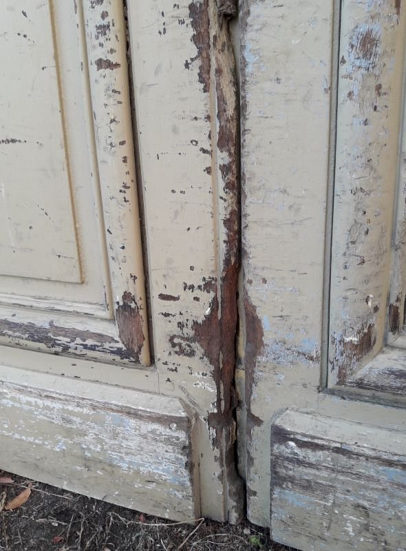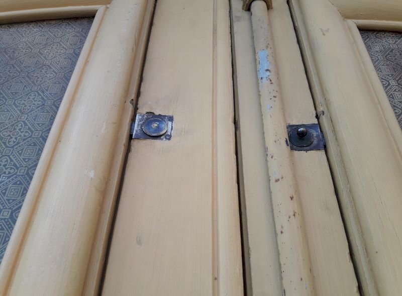 The entire oak is solid, with signs of use and age clearly visible mainly on the exterior facade at the junction between the two doors and at the bottom.