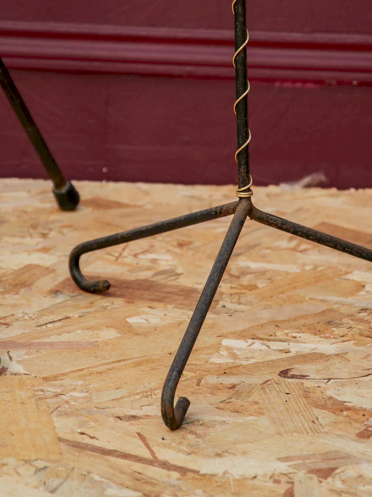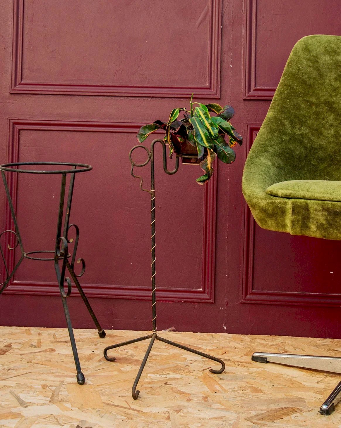 Add a touch of rustic elegance to your interior with this wrought iron plant stand featuring timeless charm. Its finish, marked by small rust spots, gives it an authenticity full of character, perfect for enhancing your plants poetically. Sold without a pot, it easily blends into any type of decor and becomes a true decorative object in its own right. A piece full of personality to make your green corner shine. Height: 53 cm Total diameter: 29 cm Diameter for the pot: 8 cm Condition: Used: Item has been used. Item shows some superficial signs of wear, ...Used: Item has been used. Item shows some superficial signs of wear, fully operational and functioning properly. It may be a demonstration model or an item returned to the store after a short period of use, with possible imperfections. Brand: Debongout Type: Vintage product Material: Iron Style: Rustic