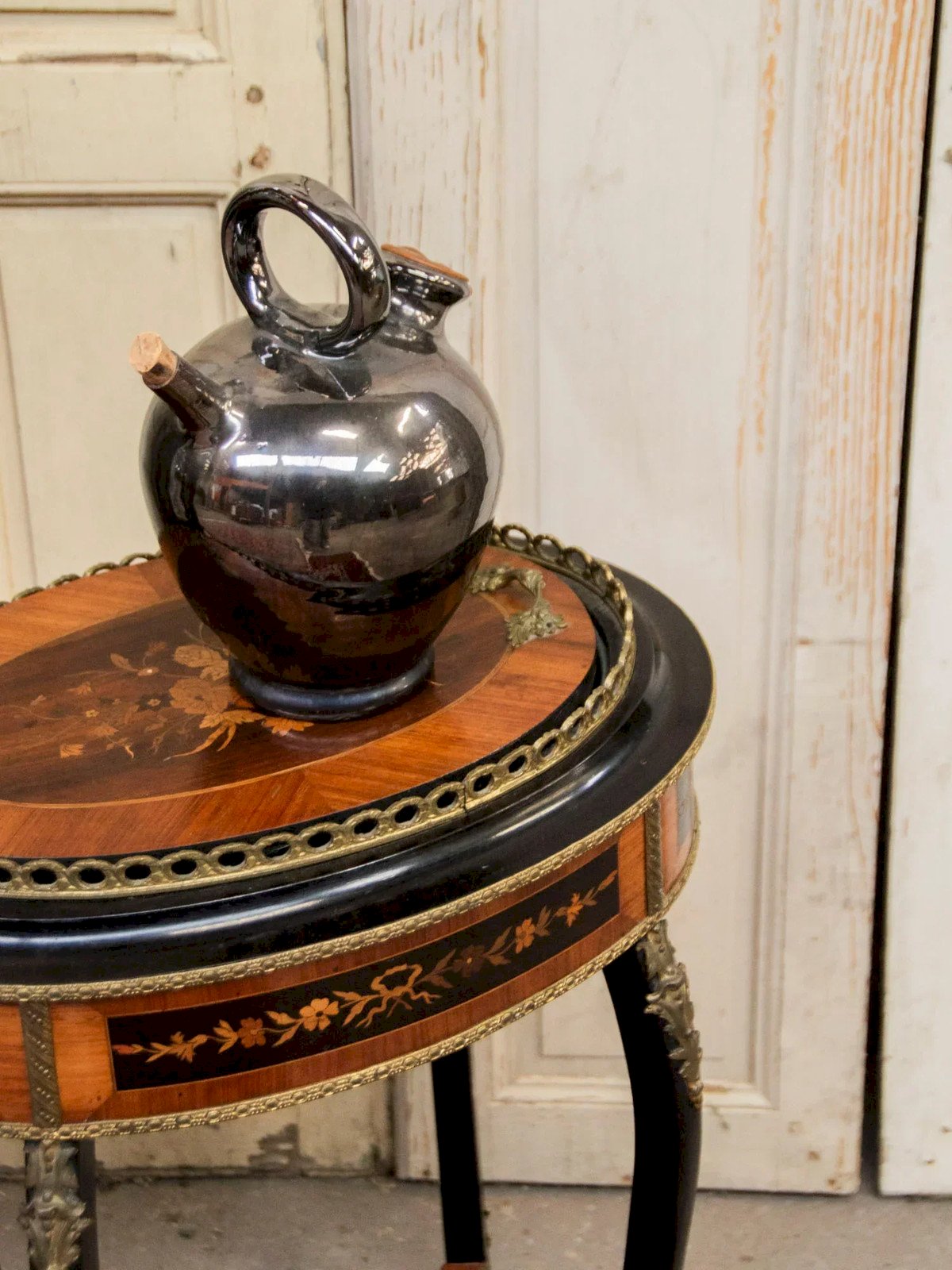 Enhance your interior with this Napoleon III era planter, inspired by Louis XV style, which brings a subtle elegance to any room. Made of light wood veneer and accented with brass gilding, it features intricate carving and curved legs that give it a refined and elongated silhouette. Its small niche and compact size provide an ideal spot for a cache-pot, a floral arrangement, or some cascading plants, creating a warm and graphic ambiance. Length: 46 cm Width: 34 cm Height: 64 cm Interior height: 11 cm Niche height: 39 cm Condition: Used: An item that has been used. The item shows some signs of superficial wear,...Used: An item that has been used. The item shows some signs of superficial wear, fully operational and functioning properly. It may be a display model or an item returned to the store after a short period of use. Any imperfections. Brand: Debongout Type: Antique product Material: Wood, Brass Style: Country.
