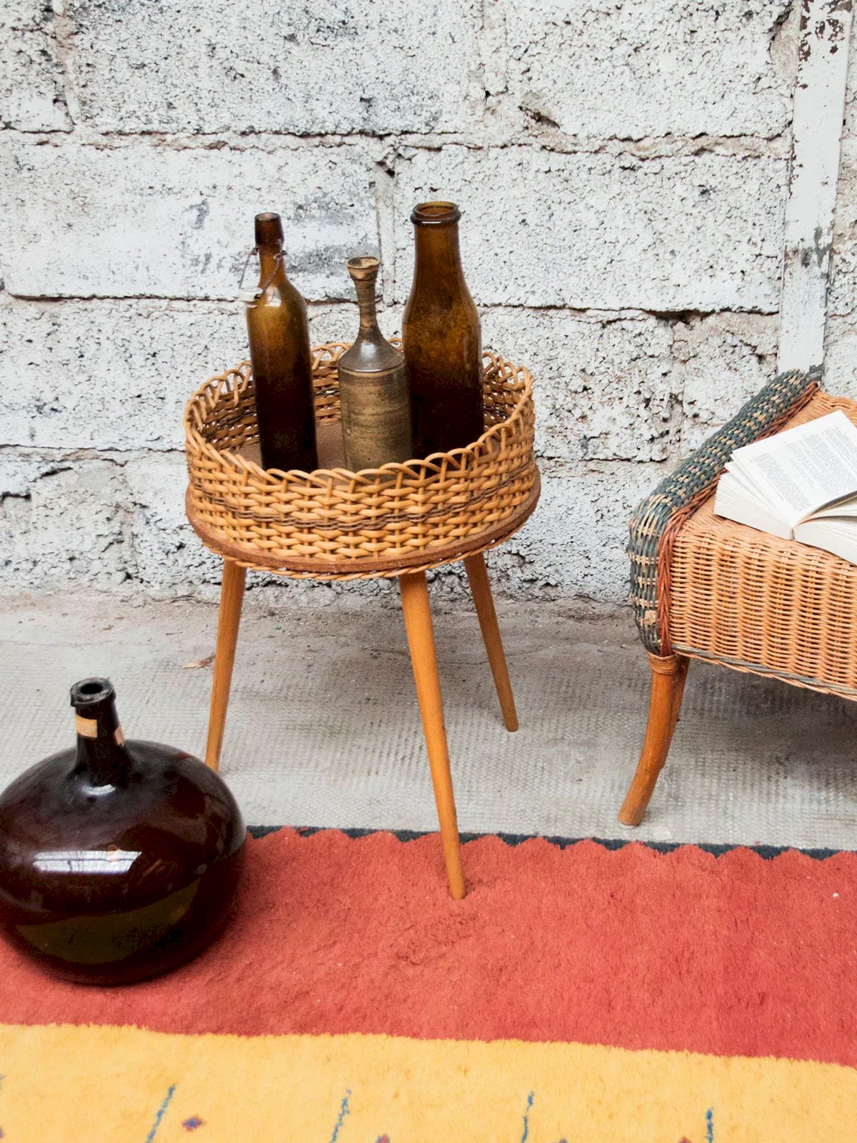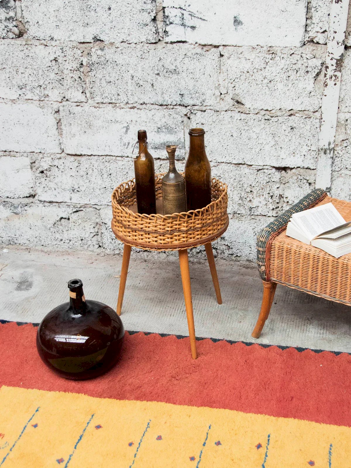 Add a warm touch to your home with this beautiful round wicker plant stand or small side table. Raised on elegant wooden taper legs, this accessory combines contemporary design and natural charm. Its solid and lightweight structure allows you to showcase your plants while harmoniously integrating with your decor. Perfect for greenery enthusiasts looking to add a note of authenticity to their space, it will charm with its timeless elegance. Height: 53 cm Diameter of the top: 37 cm Condition: Used item: Item that has been used. Item showing some signs of superficial wear...Used item: Item that has been used. Item showing some signs of superficial wear, fully operational and functioning correctly. It may be a demonstration model or an item returned to the store after a short period of use. Potential imperfections. Brand: Debongout Type: Thrifted product Material: Wicker Style: Country