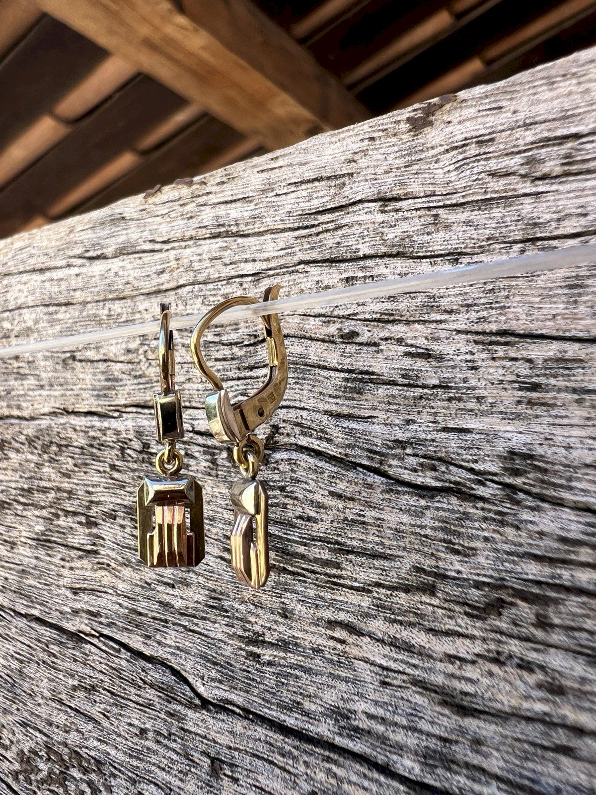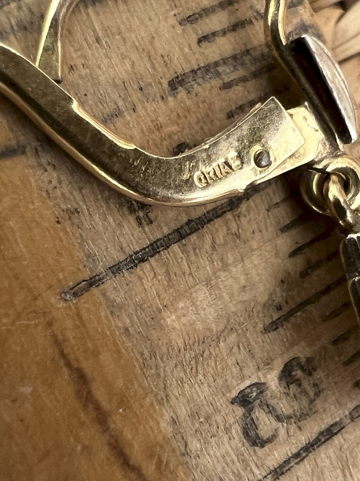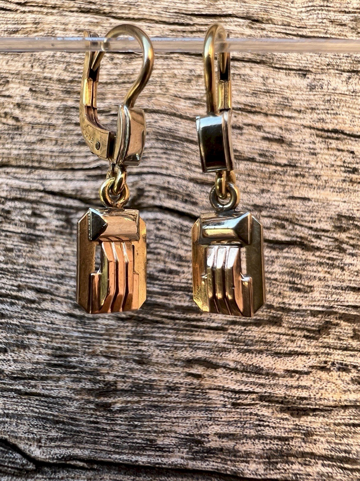 Art Deco 1925 hallmark gold-plated earrings by Oria. Vintage antique pair of earrings, sleeper style with tassel from the brand Oria, coming from an old new stock. These have never been worn. These earrings are bicolored. Length of the earrings is approximately 2.2 cm, very good condition, vintage, antique. Condition: Used: Item has been worn. ...Used: Item has been worn. any imperfections. Dominant stone: None Brand: Oria Country of manufacture: France Dominant color: Gold Fastening: Sleeper Material: N Metal: Gold-plated