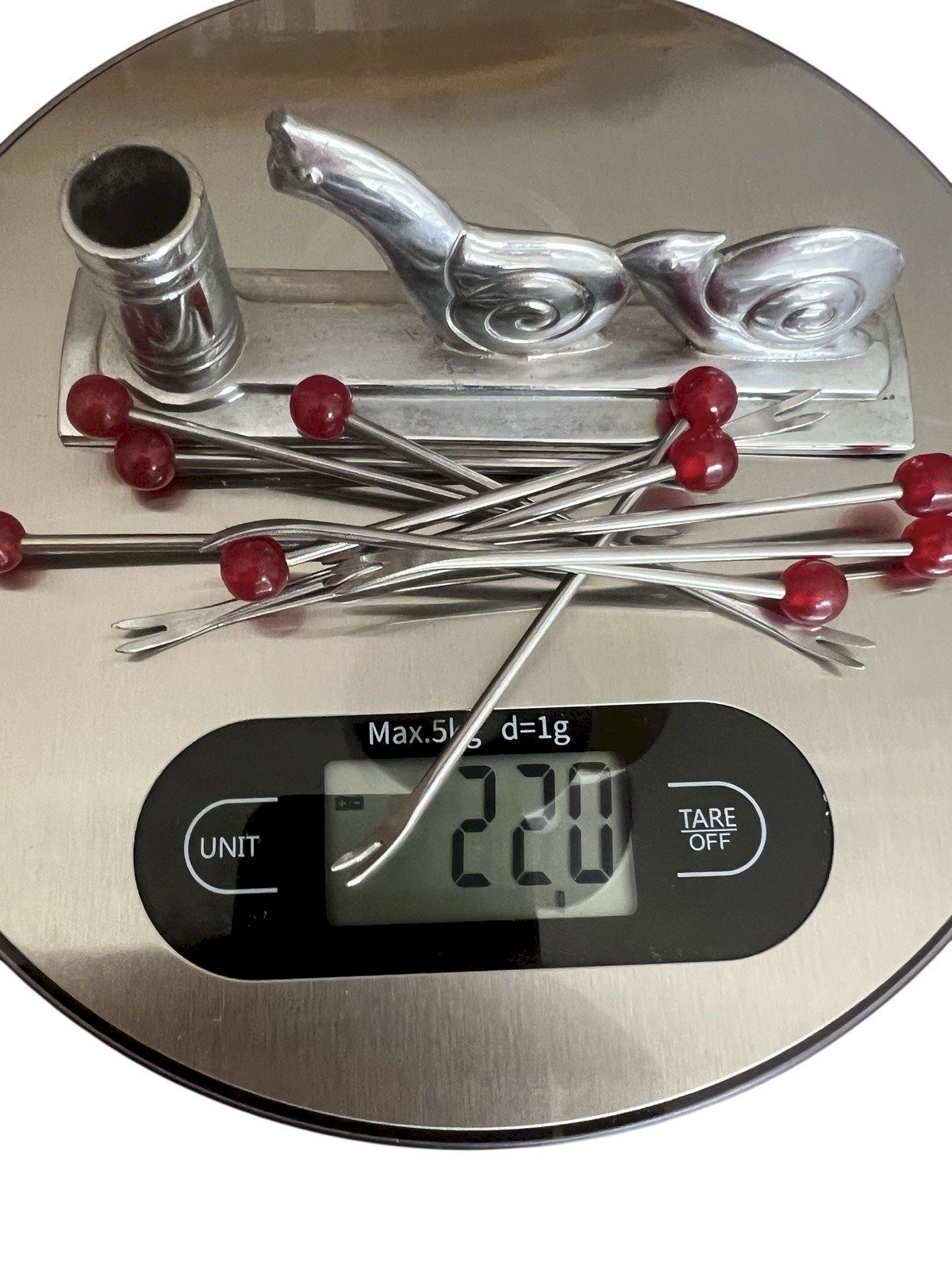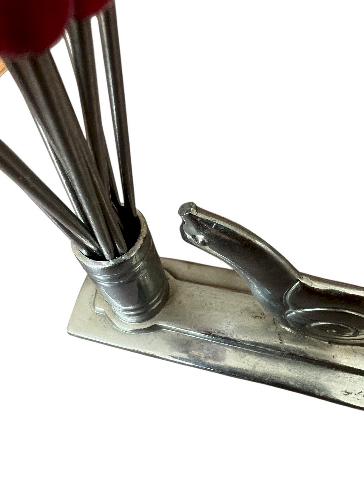 Art Deco snail toothpick holder 1925 vintage tableware. Dimensions approximately 12.5 cm by 3 cm by 5.5 cm. Its weight is 220 g. There are five toothpicks. Antennae missing on the first snail, see the last photo. Sold as is. Authenticity: Original. Brand: Benjamin, Rabie. Weight: 220g. Period: Art Deco. Origin: France. Country of manufacture: France. Height: 5.5 cm. Material: Metal, chrome. Style: Art Deco. Length: 12.5 cm. Width: 3 cm.