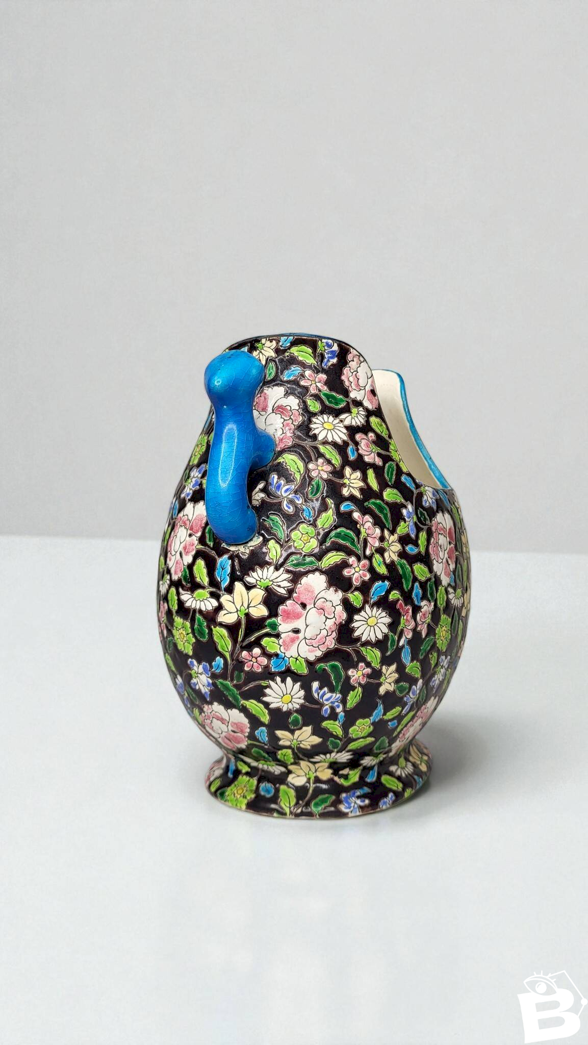 Old vase decorated with flowers, in ceramic, Roger Colas, from Clamecy