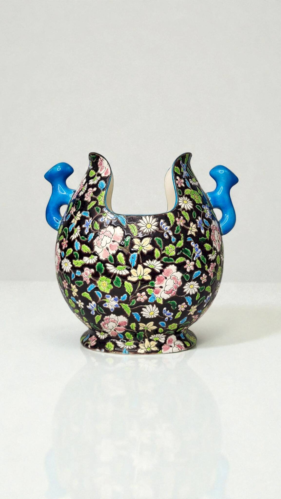 ancient amphora vase in ceramic oxblood with painted floral decoration China?