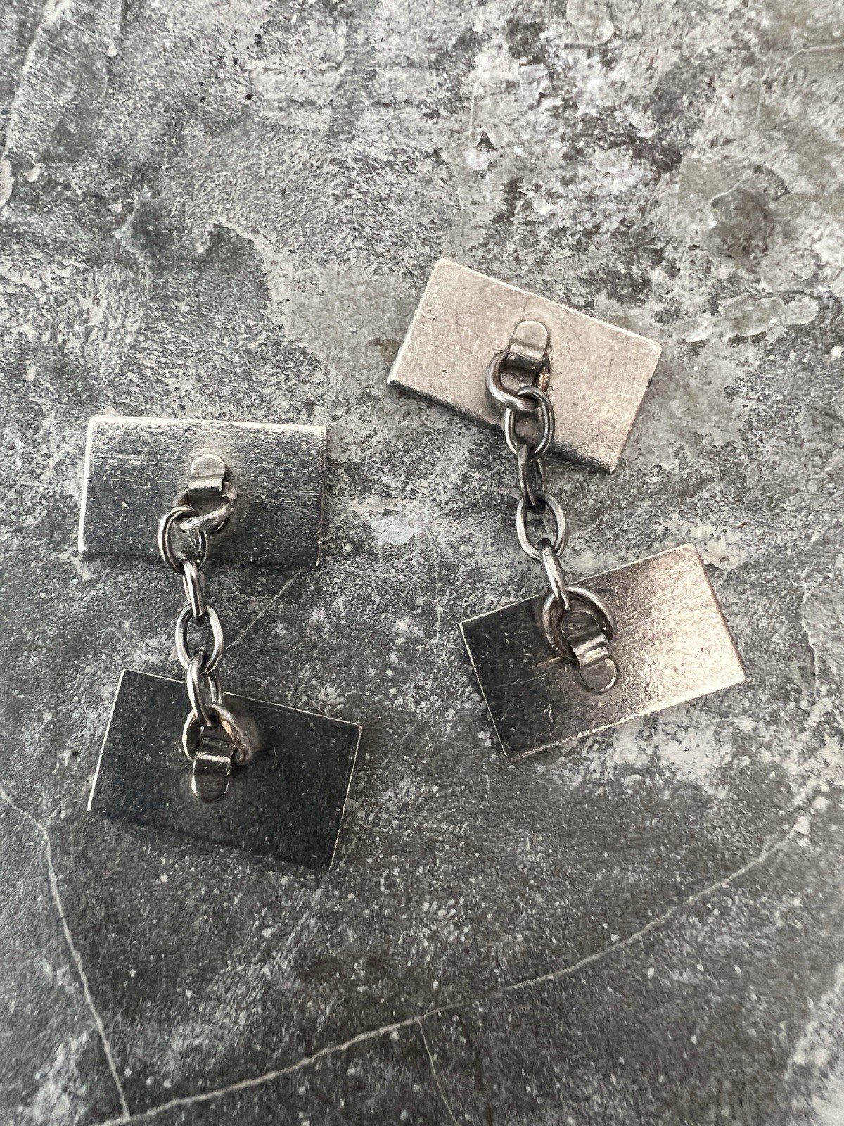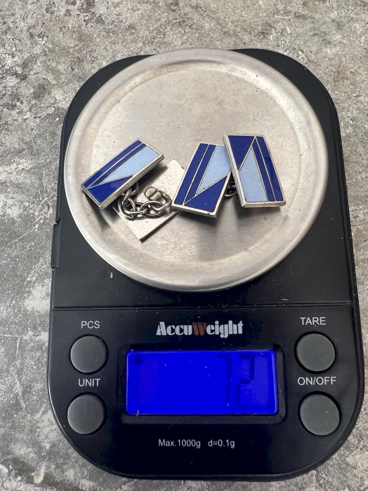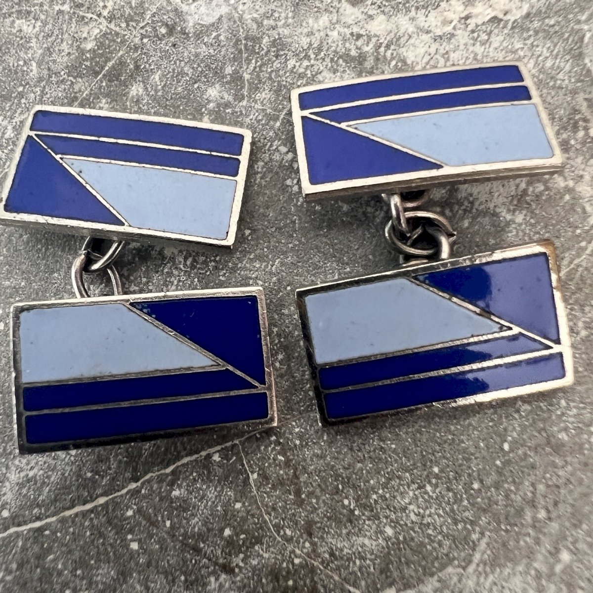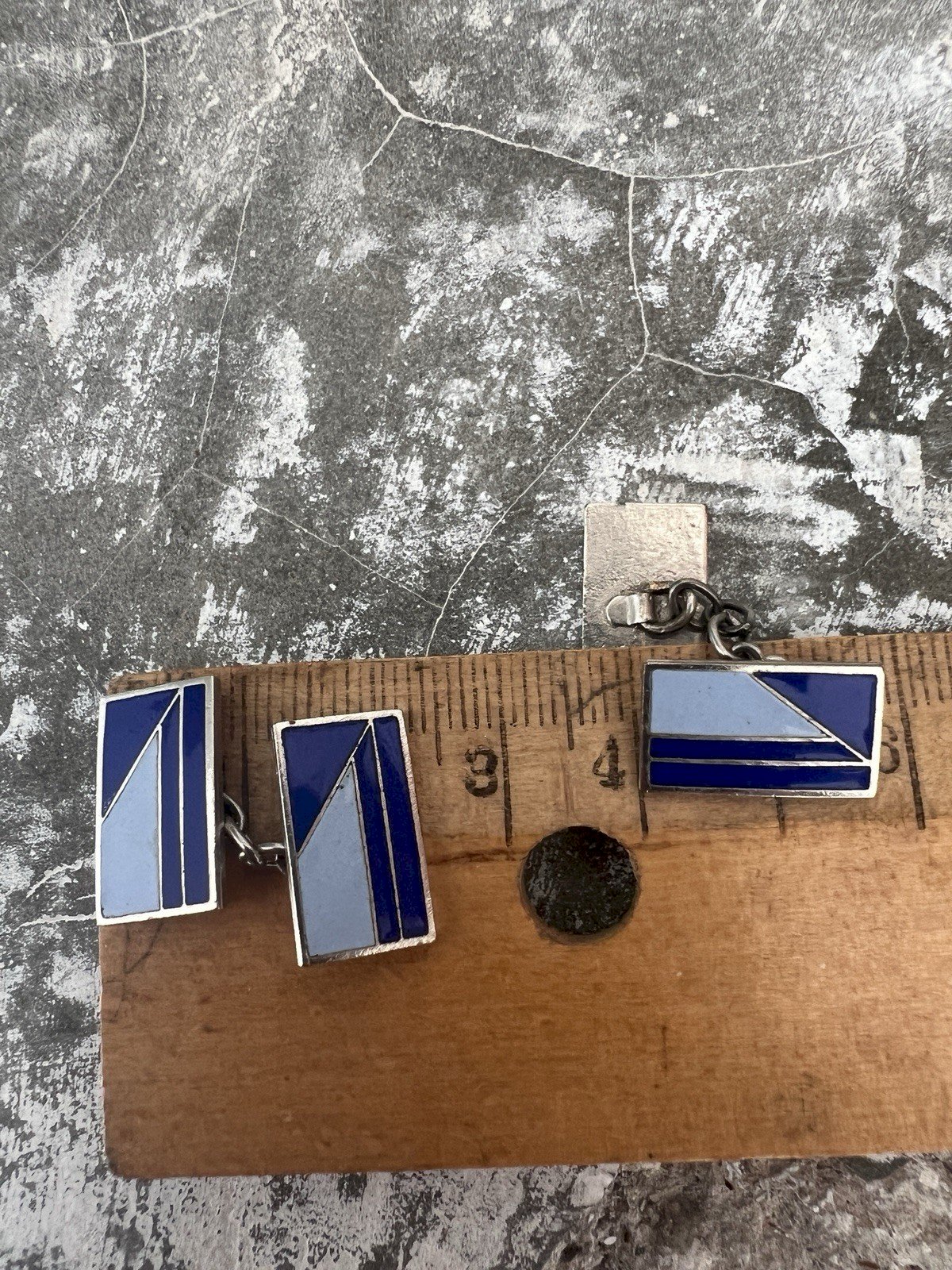 Pair of cufflinks with a typical Art Deco design from 1925, enamel on chrome Dimension 0.9 cm by 1.8 cm. Wear from use Condition: Used - Very good condition: This item has been lightly used, but its condition is acceptable. It may show some signs of wear, such as minor scratches or tarnishing. All imperfections must be shown and described in the seller's listing. Brand: Art Deco Country of origin: France Dominant color: Blue Material: Enamel Metal: Enamelled Metal