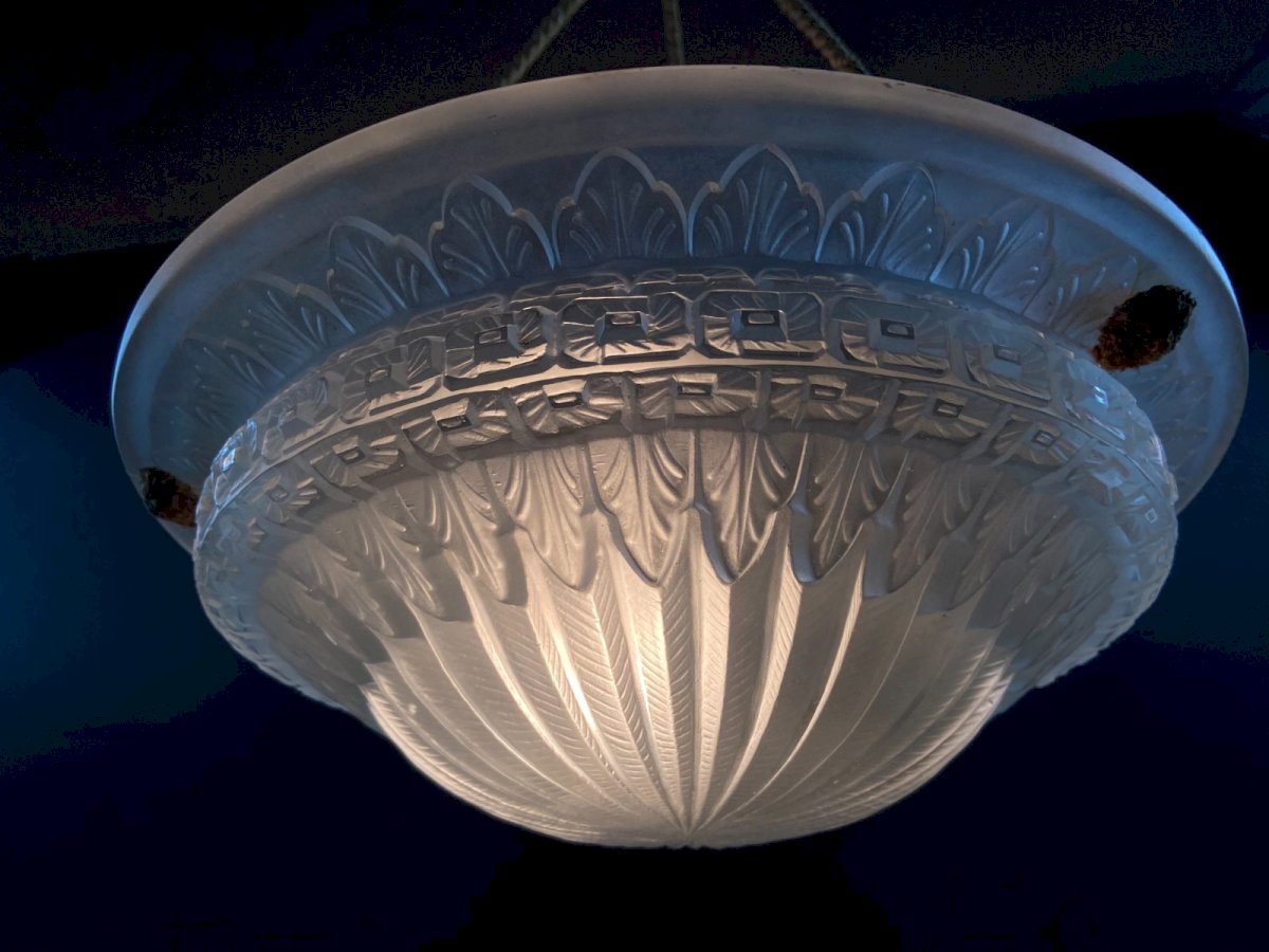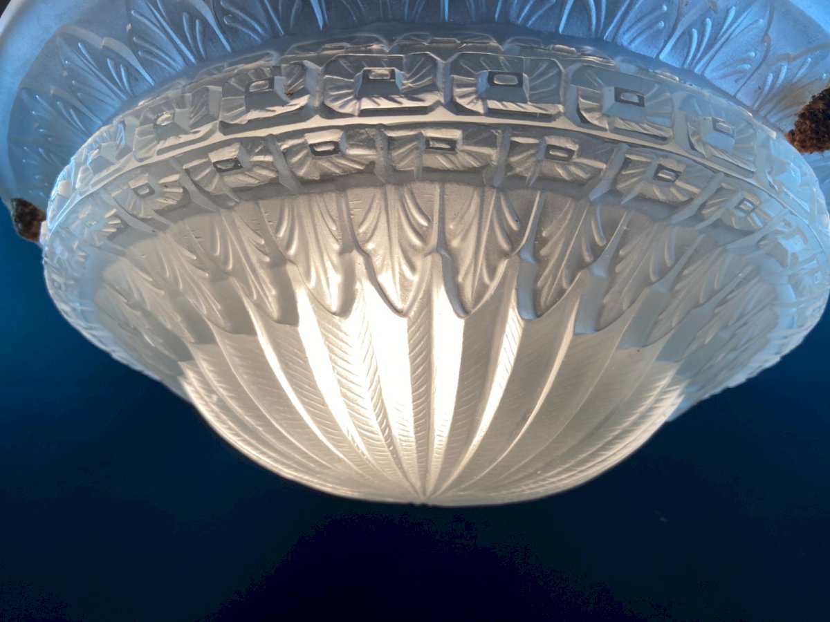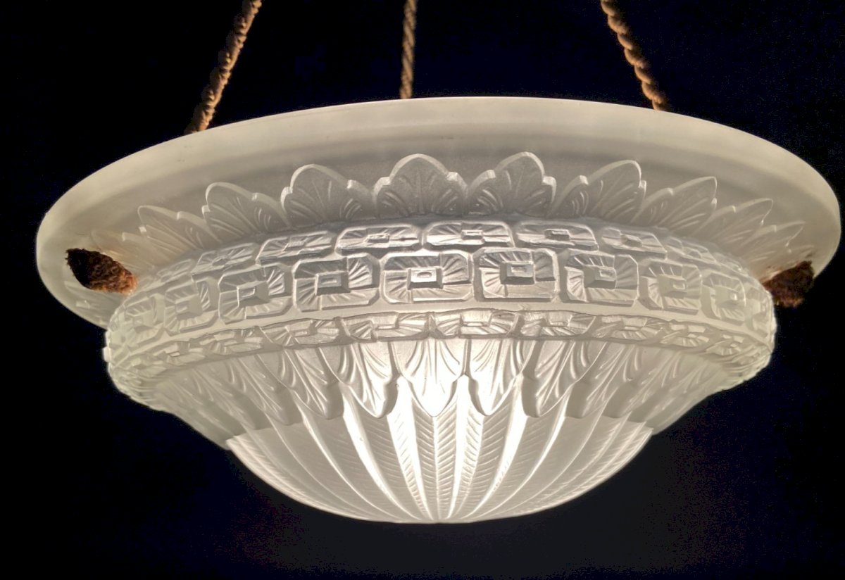 Stunning Art Deco bowl chandelier in glass signed Charles SCHNEIDER 1881-1953 Unquestionable elegance Diameter: 35 cm Weight: 3692 grams Very good condition Bulb not included Ultra-secure shipping to destinations worldwide - Order pick-up available by appointment, 7 rue Notre-Dame 18000 Bourges. - Possibility of grouping within the same package: please contact me beforehand so I can calculate your optimized shipping costs. Type: Suspension, Chandelier Period: Art Deco Country of origin: France Sub-type: Interior Material: Glass Lighting type: Standard Style: Art Deco