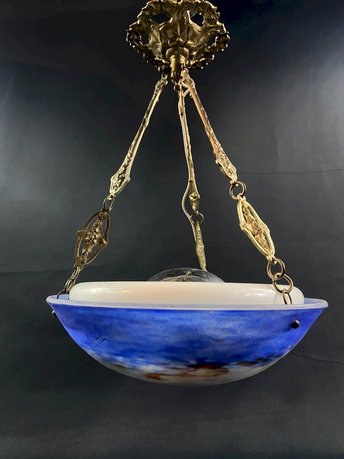 Art Deco glass pendant chandelier signed Lorrain Dimensions: Height 51 x Diameter 36 approximately Weight: 4832 grams I will only mention the presence of minor signs of wear Ultra-secure shipping worldwide - Order pickup possible by appointment, 7 rue Notre-Dame 18000 Bourges. - Possibility of grouping in the same package: please contact me in advance so that I can calculate your optimized shipping costs. Type: Pendant, Chandelier Period: Art Deco Sub-type: Indoor Country of origin: France Material: Glass Style: Art Deco Type of lighting: Standard