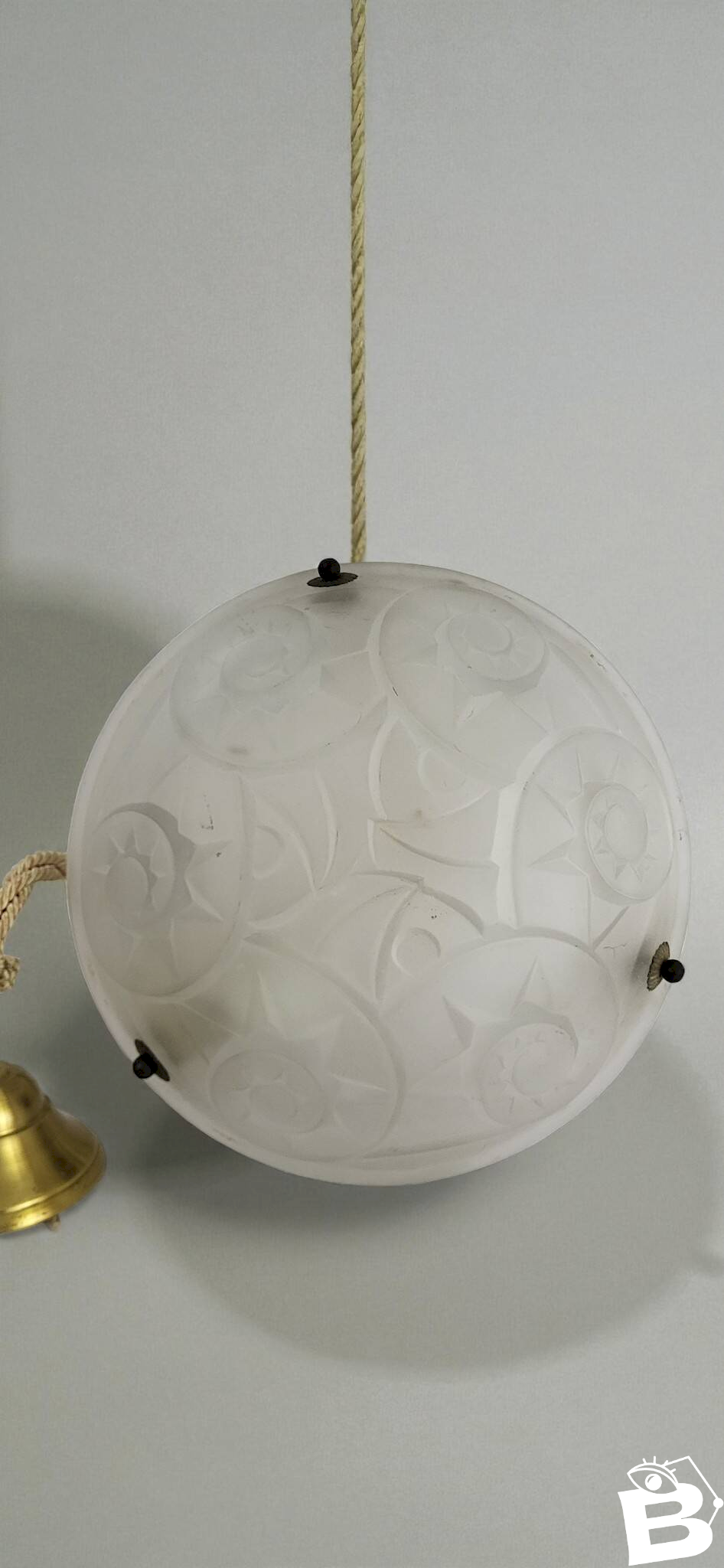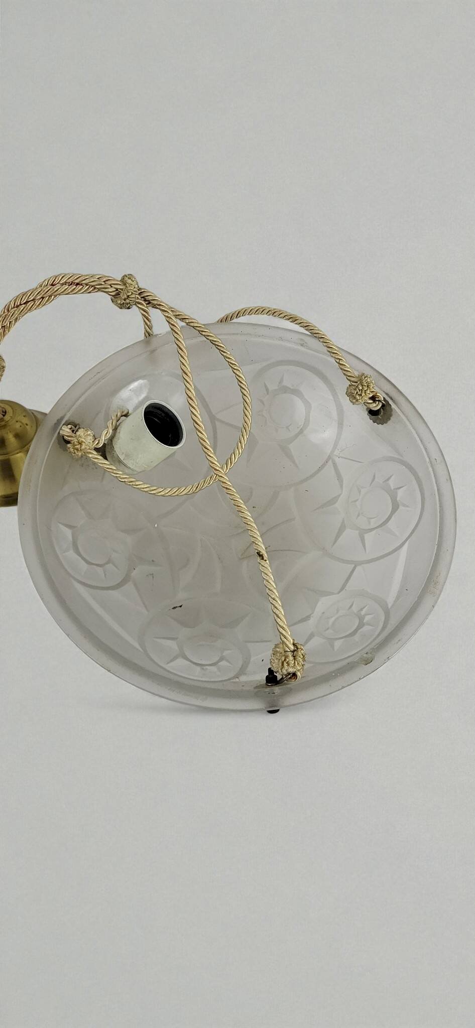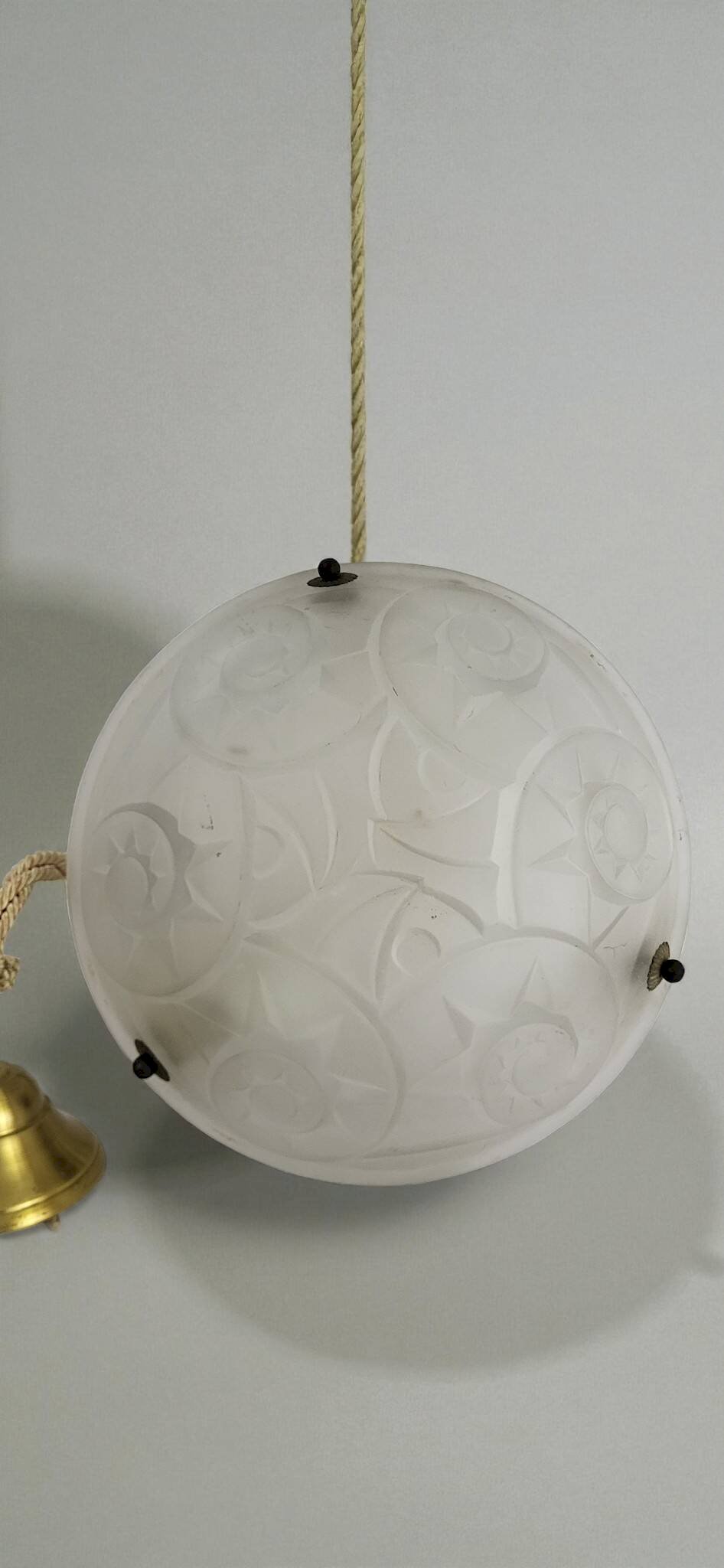 Art Deco Glass Paste Suspension. Height 60 cm. Basin Diameter 30 cm. Some chips on the edge near the ceiling (not visible from above). In good condition / normal signs of use and age. L: 30 l: 30 H: 60