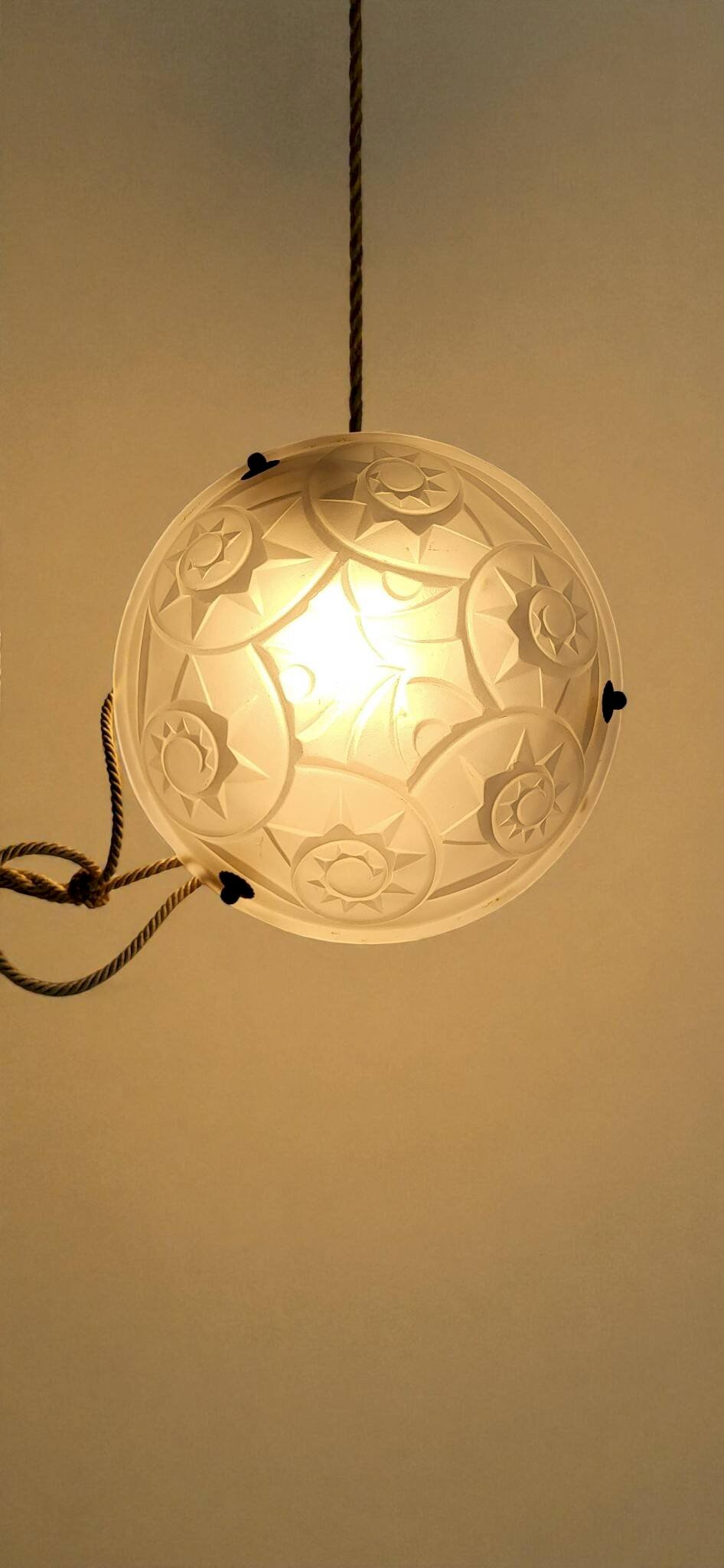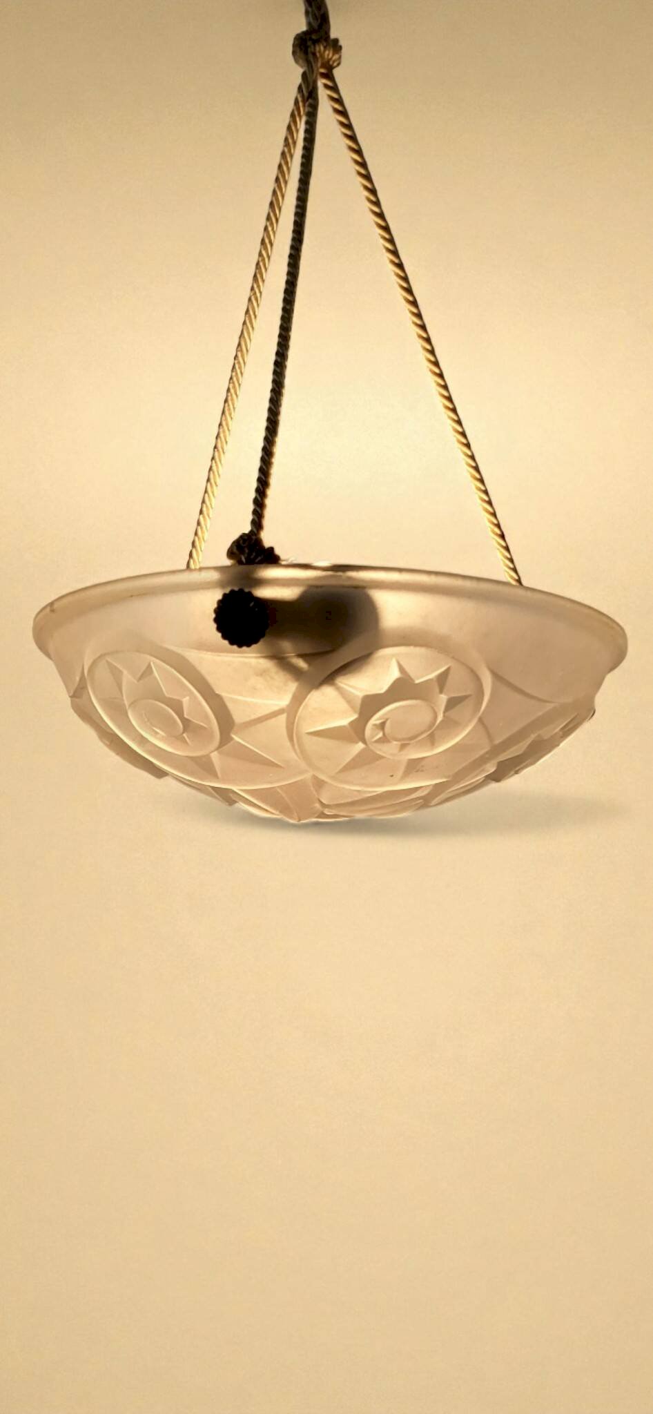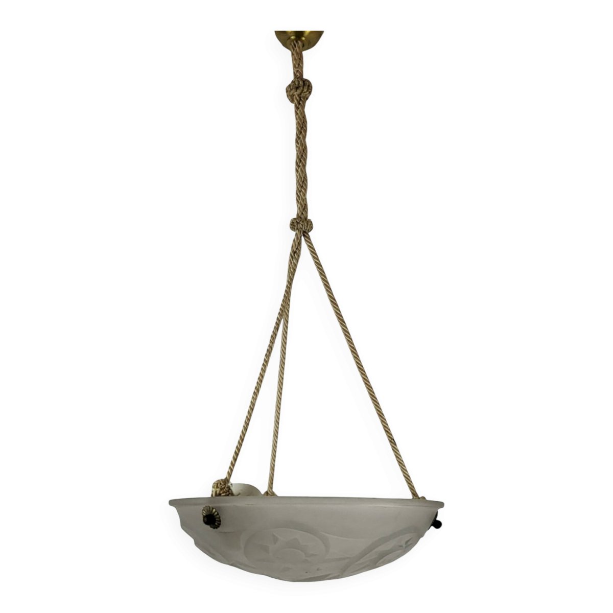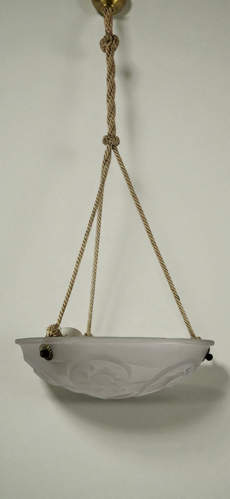 Art Deco Glass Paste Suspension. Height 60 cm. Basin Diameter 30 cm. Some chips on the edge near the ceiling (not visible from above). In good condition / normal signs of use and age. L: 30 l: 30 H: 60