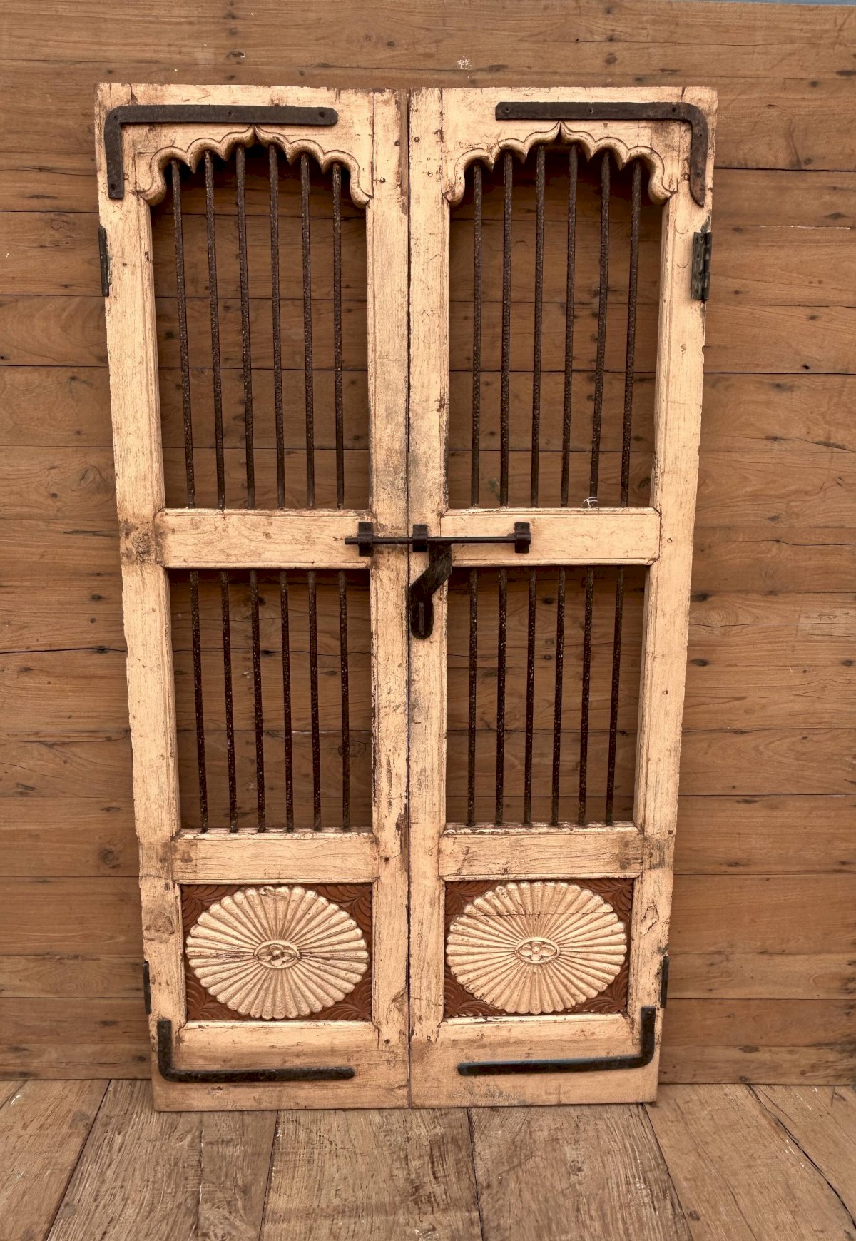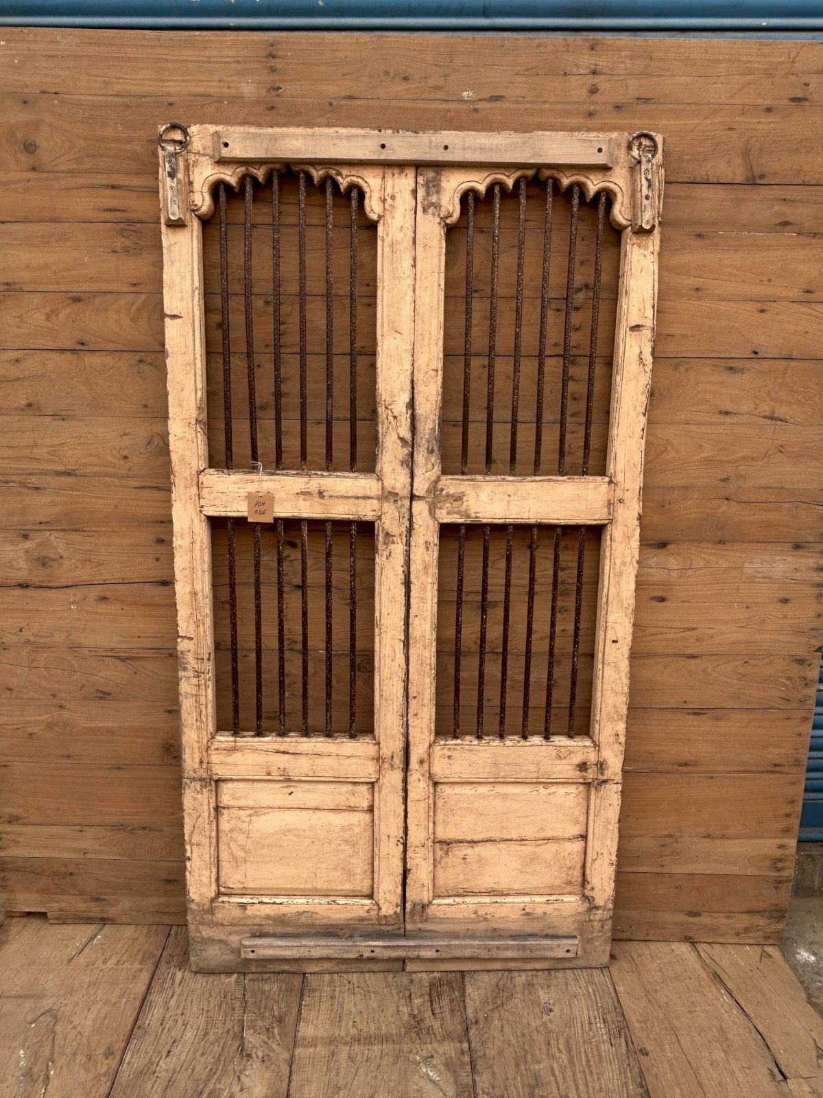 Art Deco teak patio door with original patina / 98 x 4 x 183 cm - 49 kg
