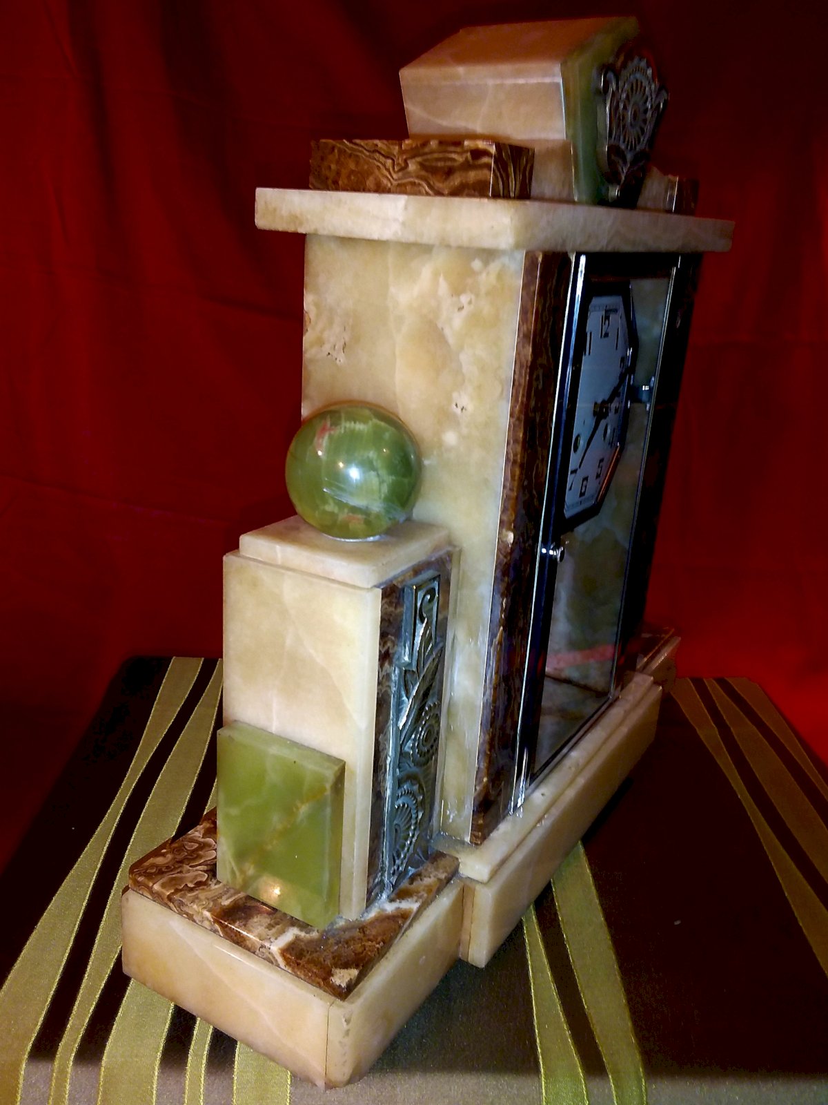 Monumental Skyscraper Clock from the 1930s, High-End French Production, Typical Mix of Marbles, Onyx, Silvered Metal, and Glass.