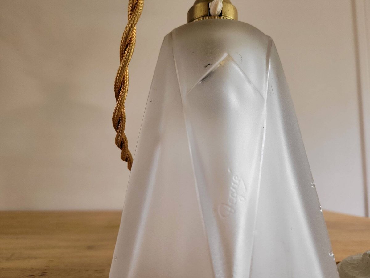 * BEAUTIFUL LAMPSHADE SUSPENSION FROSTED GLASS FLYING BLUE EDGE Early 20th century decoration