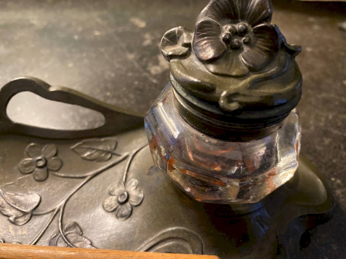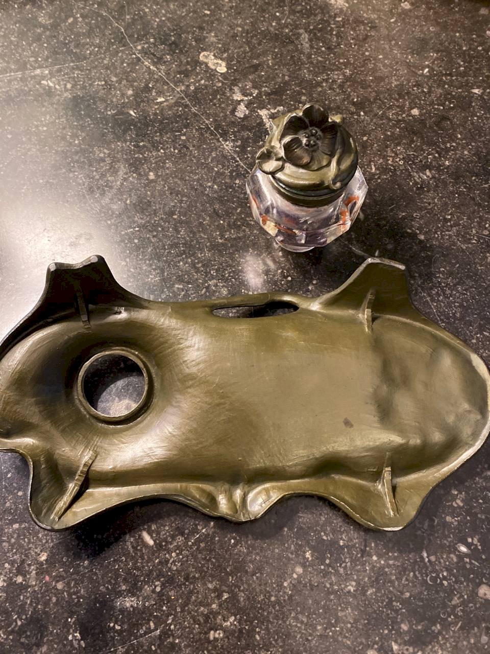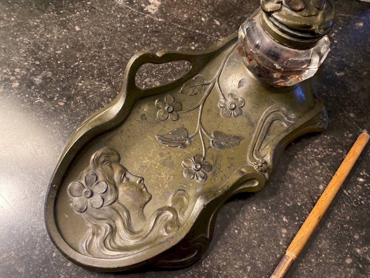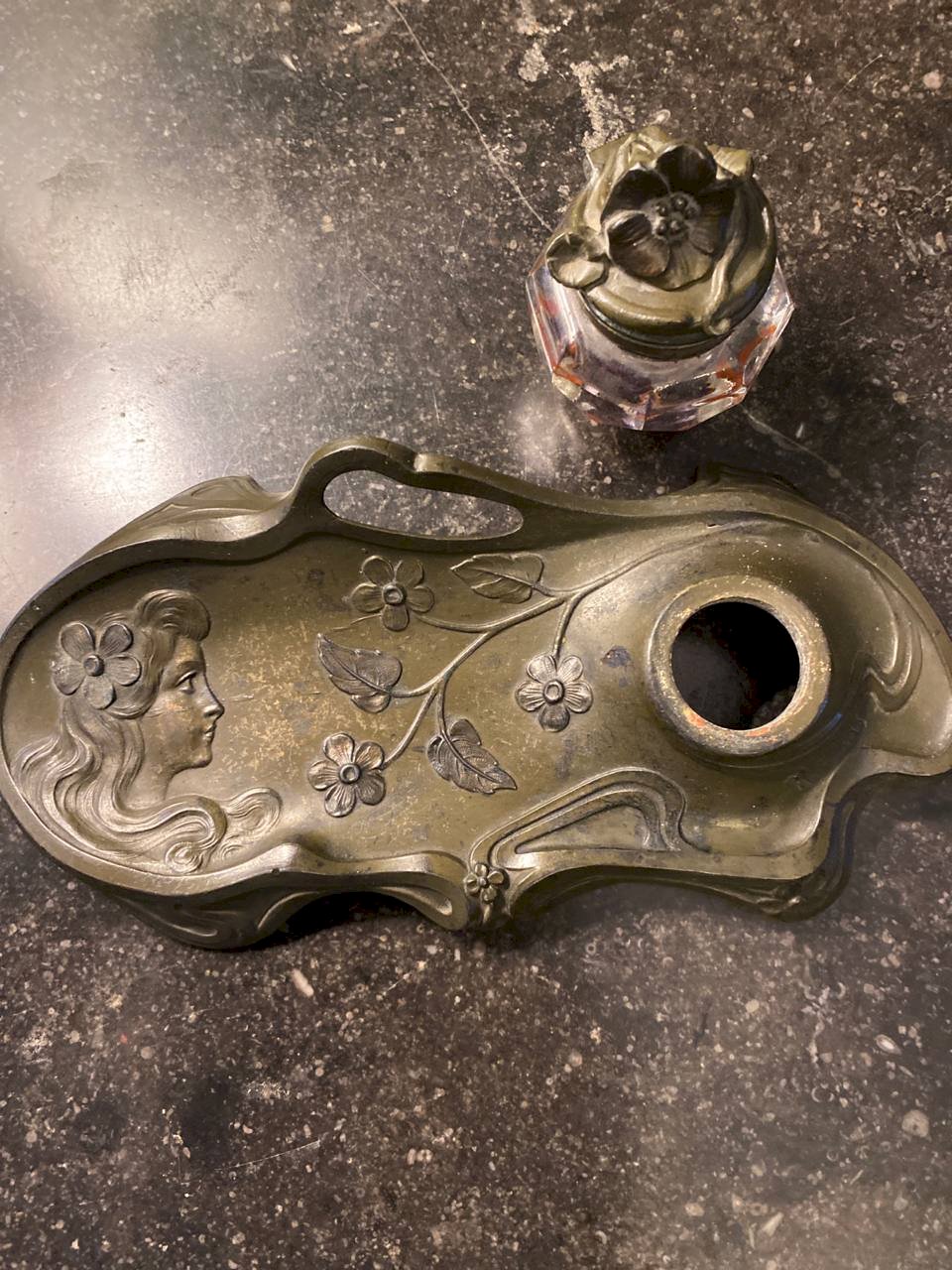 Art Nouveau inkwell signed R. Elias, dating from the Belle Époque (late 19th – early 20th century).