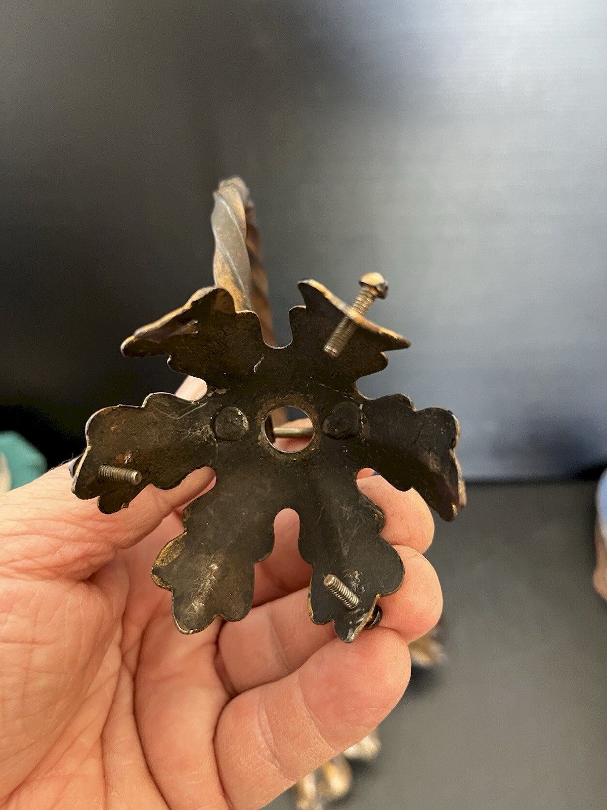Art Nouveau style lamp base made of metal with a twisted body and a foliage base with a claw to secure the globe. Please note a small break in one of the claw's fastening legs (see last photo). Height 49 cm, weight 600 g. Please look at the photos above which will also serve as a description. Careful and secure packaging with the possibility of sending by post to be selected at the time of purchase for the calculation of shipping costs. (otherwise classic Mondial Relay shipping) Thank you all and happy hunting in my shop. Returns accepted within 14 days of receipt, to be returned in its original packaging and in its original condition. No refund for items returned broken or lost by the carrier; return shipping costs are the responsibility of the buyer. Type: Lamp base, Period: Art Nouveau, Sub-type: Table lamp, Material: Metal.