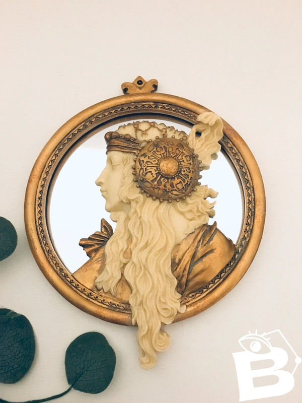 I can reduce shipping costs ✨ Art Nouveau style mirror, woman inspiration from the artist Mucha. Very good condition. Gilded resin. Probably dating from the 70s-80s. 24.5 x 19.5 cm. Buy two items from my closet, get the third one free ☺️ (the cheapest of the three…) Contact me for purchasing a lot. Shipping discount possible for vases, plates, bowls. #retro #vintage #vintageceramics #antiques #englishceramics #artdeco #70s #bohemian...