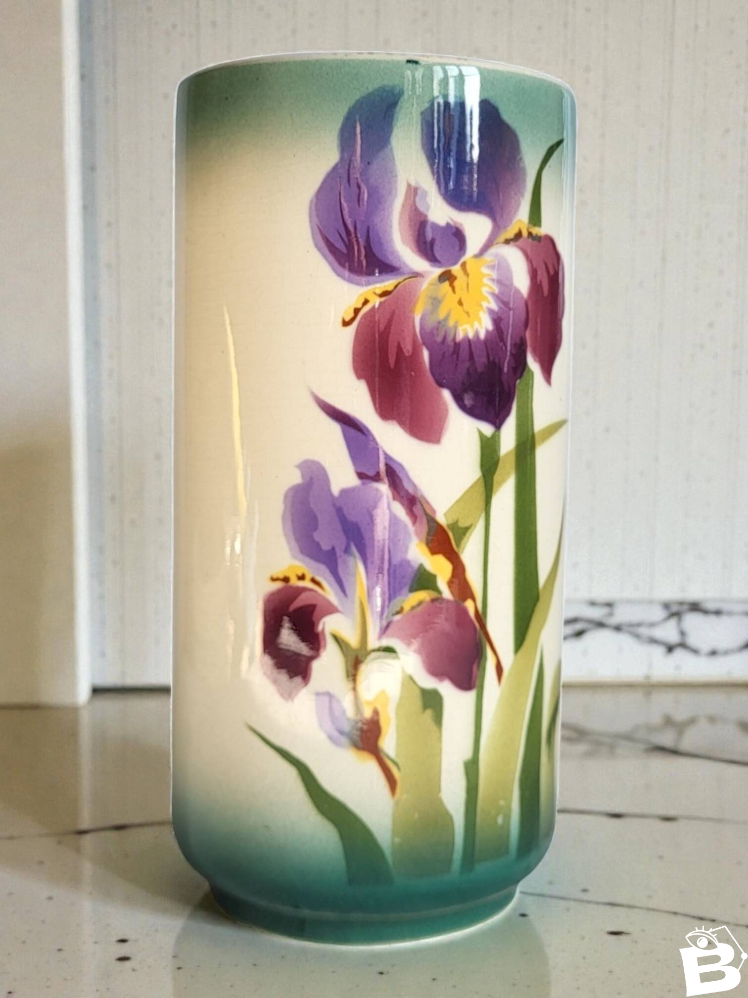 Art Nouveau Cylinder Vase in Choisy le Roi Faience. Brand Boulenger & Cie, late 19th century. Height 18.7 cm. Diameter 9 cm. In good condition with signs of aging. Careful packaging and fast delivery. L: 9 W: 9 H: 18