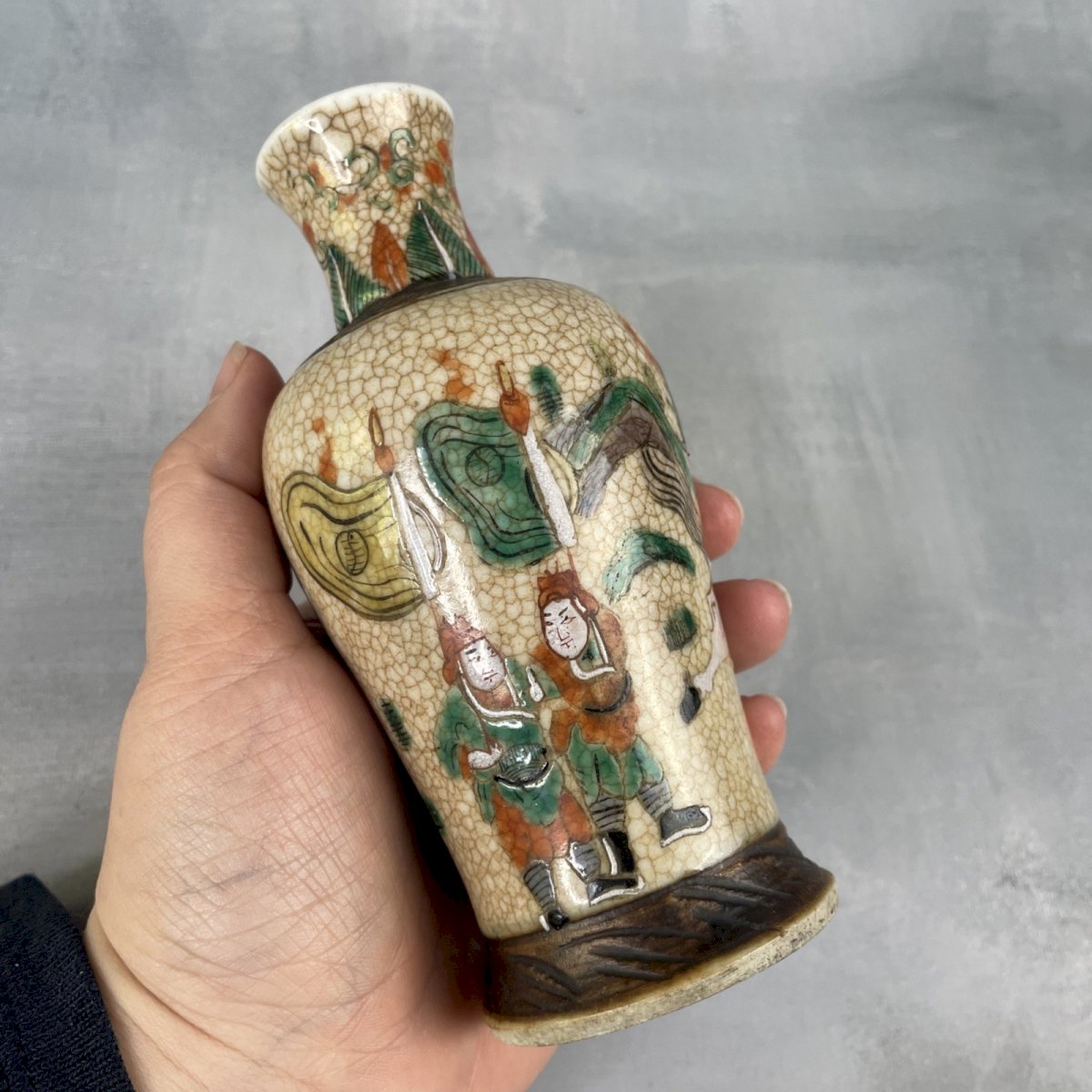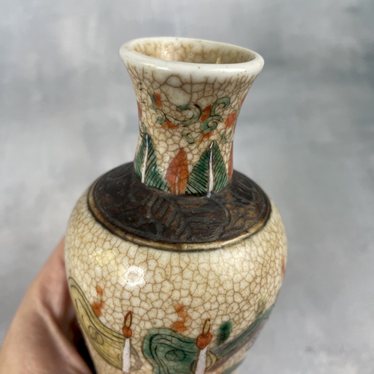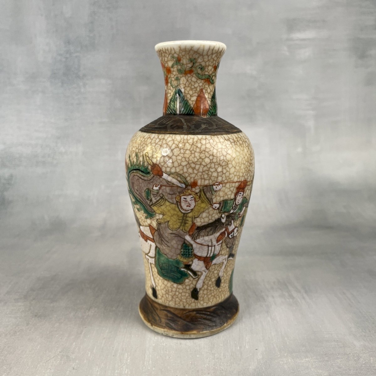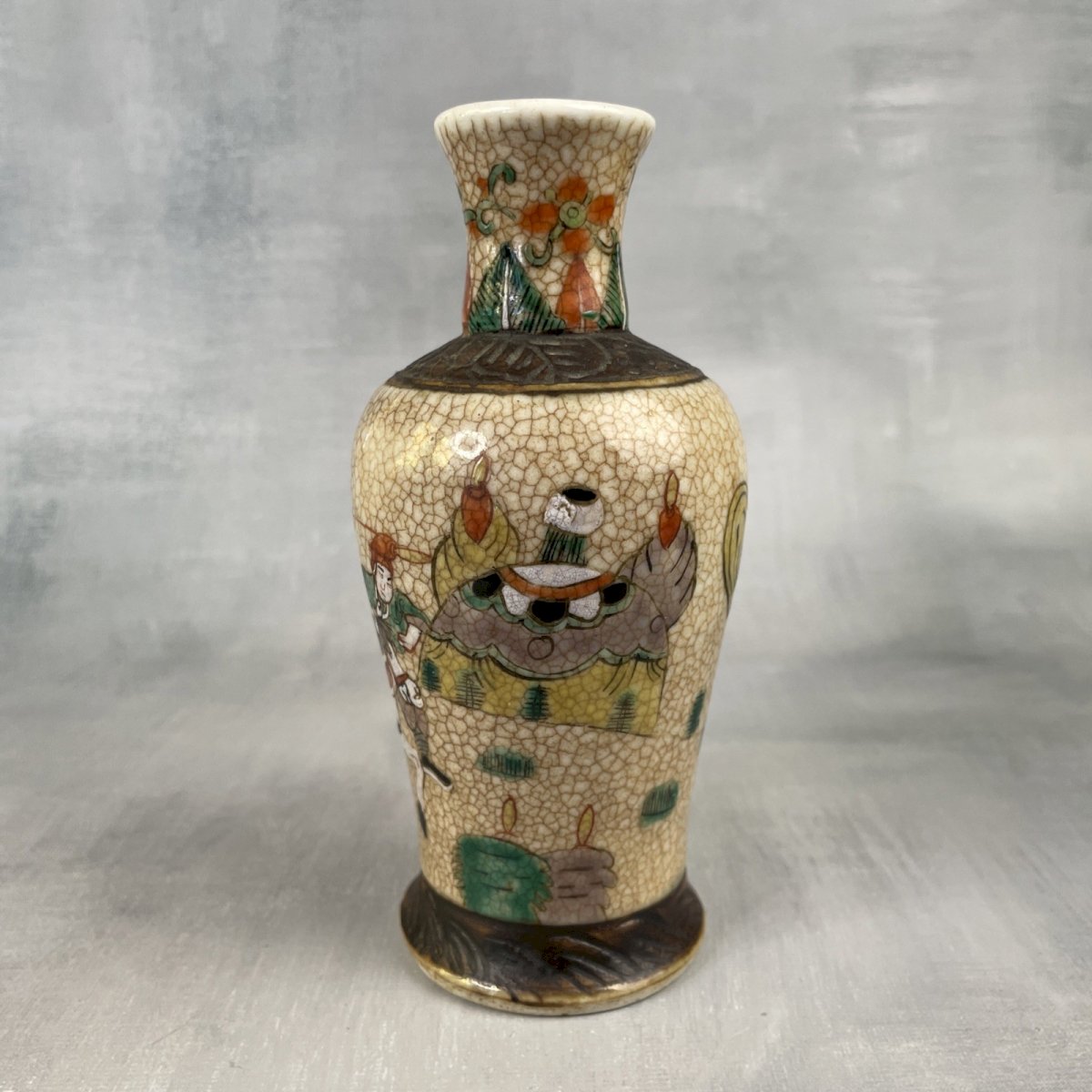ASIA NANKIN Asian ceramic vase cracked war scene ~14.5cm Height ~ 14.5 cm Base diameter ~ 5.5 cm Total weight ~ 0.26 kg Excellent condition, no issues, see photos Remember to group your purchases to reduce shipping costs! Country of manufacture: Japan