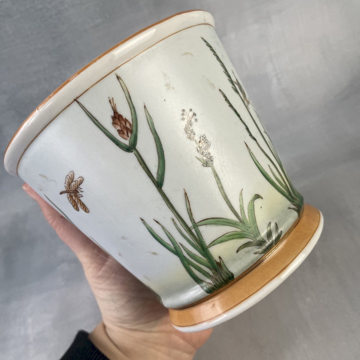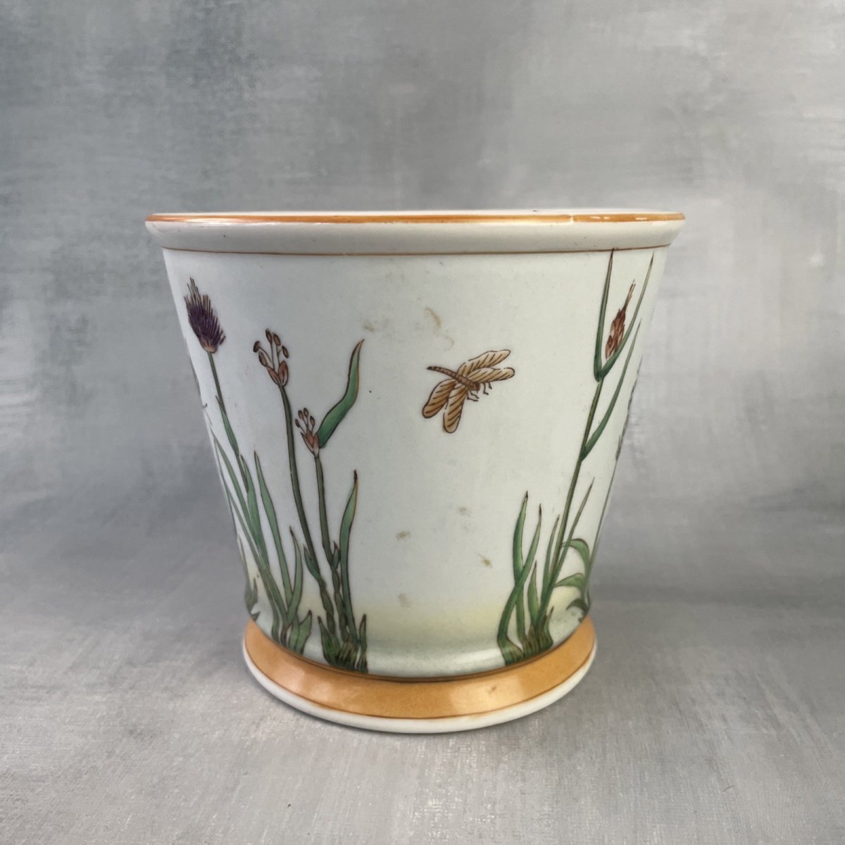 ASIA porcelain vase/plant pot decorated with plants, flowers, and insects - brand to be identified Height ~ 11.6 cm Diameter of base ~ 9.8 cm Total weight ~ 0.57 kg Excellent condition, slight loss of gilding, see photos. Consider grouping your purchases to reduce shipping costs! Country of origin: China