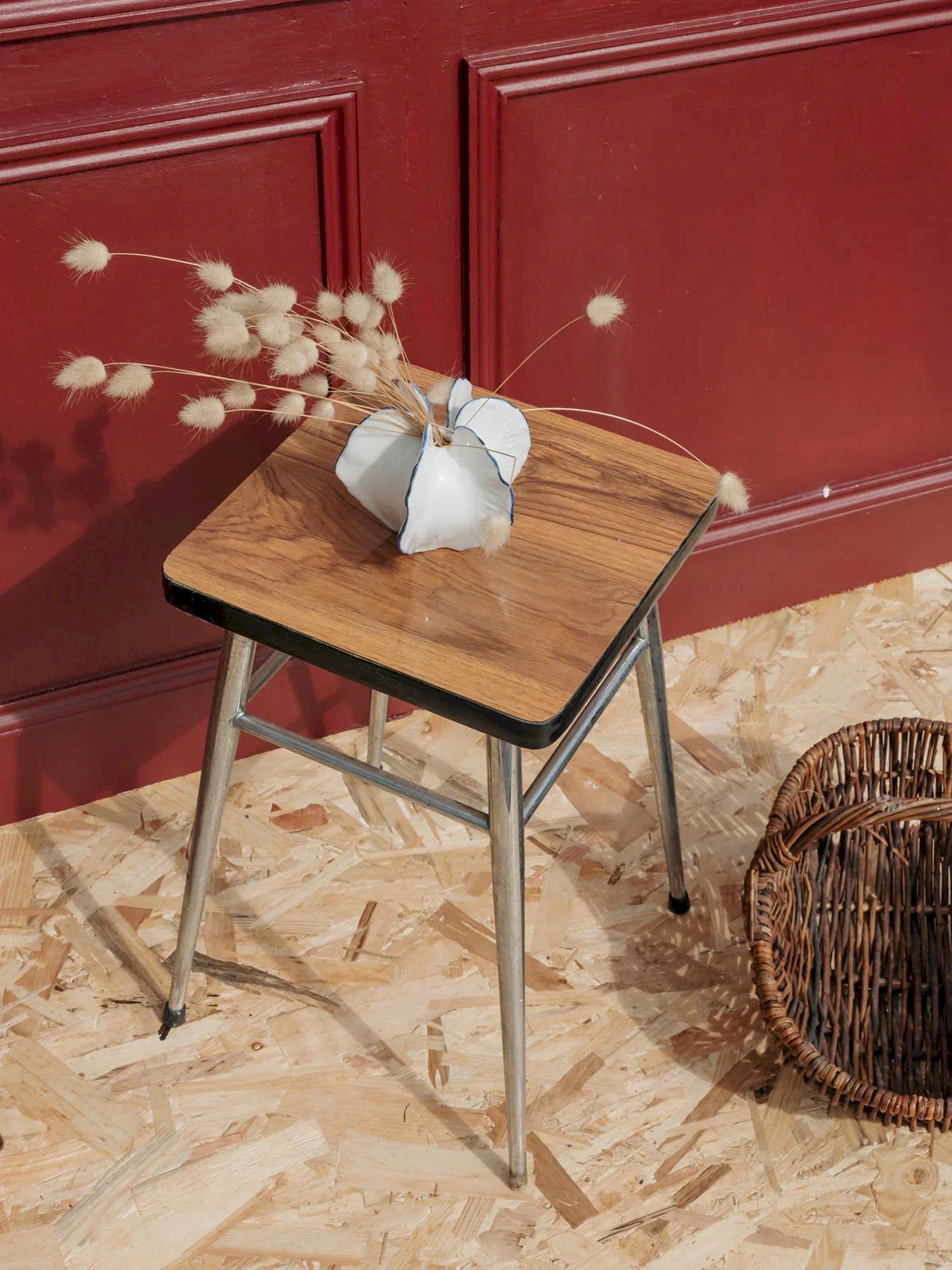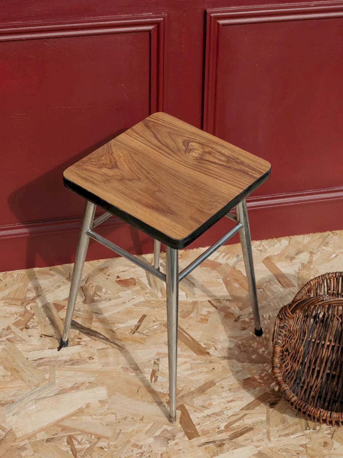 Bring a retro touch to your interior with this vintage design stool. Its wood-effect formica seat, surrounded by a black outline, creates an elegant contrast while the chrome legs add a note of modernity. Although slightly worn, the chic of this stool remains undeniable, making it an essential element of your decor. Ideal for the kitchen or living room, this stool brilliantly combines comfort and style. Sold individually, 3 quantities are available! Length: 28 cm Width: 28 cm Height: 46 cm Condition: Used: Item has been used. Item shows some signs of superficial wear...Used: Item has been used. Item shows some signs of superficial wear, fully operational and functioning correctly. It may be a display model or an item returned to the store after a short period of use. any imperfections. Color: Multicolor Height: Contemporary Width: Formica, Metal Length: Low stools Brand: Debongout Type: Vintage product Material: Formica, Metal Style: Contemporary Assembly required: No Assembly level: Fully assembled