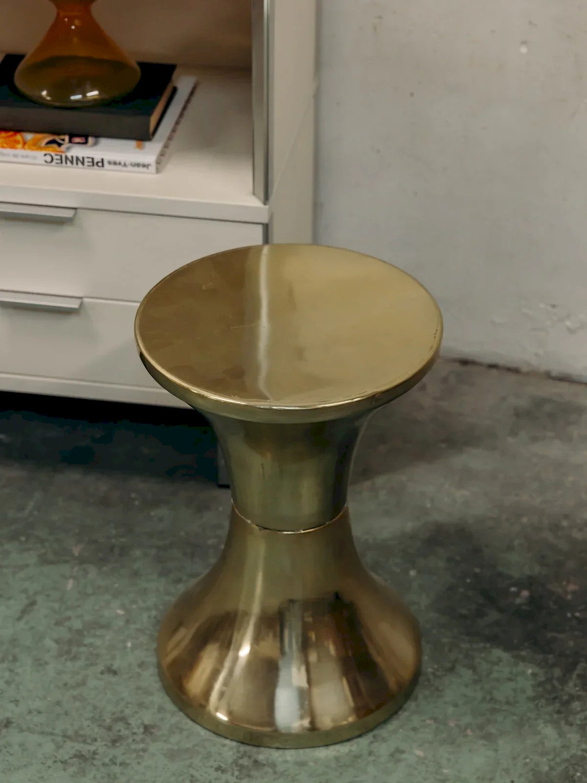 Discover a golden tam-tam stool with an original and decorative design, perfect for adding a touch of sparkle to your interior. Its metallic finish provides brilliance and modernity, while its rounded and compact shape allows it to be used as an extra seat or decorative element. Lightweight and versatile, it easily slips into a living room, bedroom, or reading nook. Its bold and elegant style makes it a piece that is both practical and aesthetic. This golden tam-tam stool becomes an essential decorative accessory to enhance your space. Height: 45 cm Seat diameter: 30 cm Condition: Used: Item has been used. Item shows some superficial wear marks, ... Used: Item has been used. Item shows some superficial wear marks, fully operational and working correctly. It may be a demonstration model or an item returned to the store after a short period of use. Any imperfections. Color: Multicolored Height: Contemporary Width: Resin Length: Low stools Brand: Debongout Type: Thrifted product Material: Resin Style: Contemporary Assembly required: No Assembly level: Fully assembled