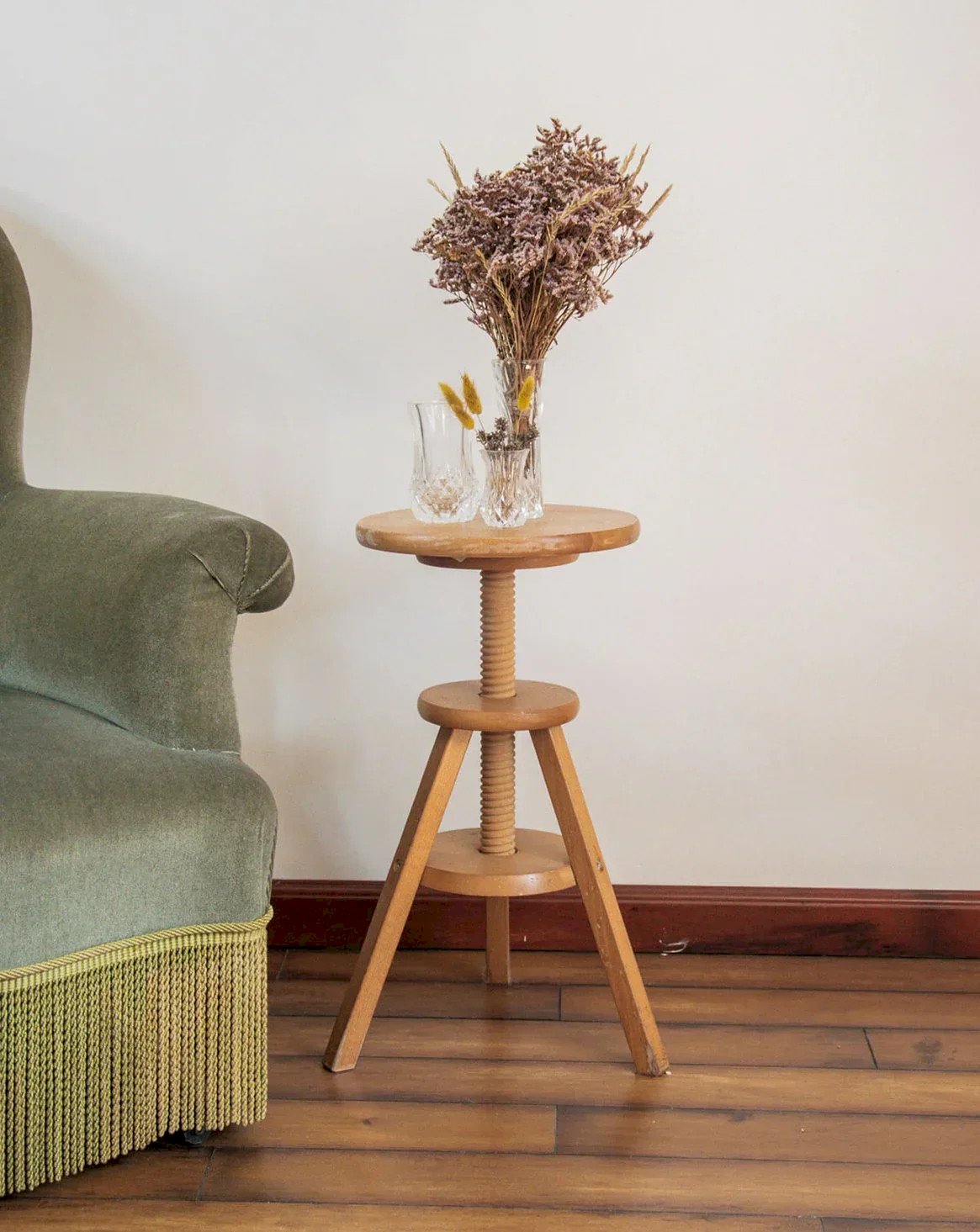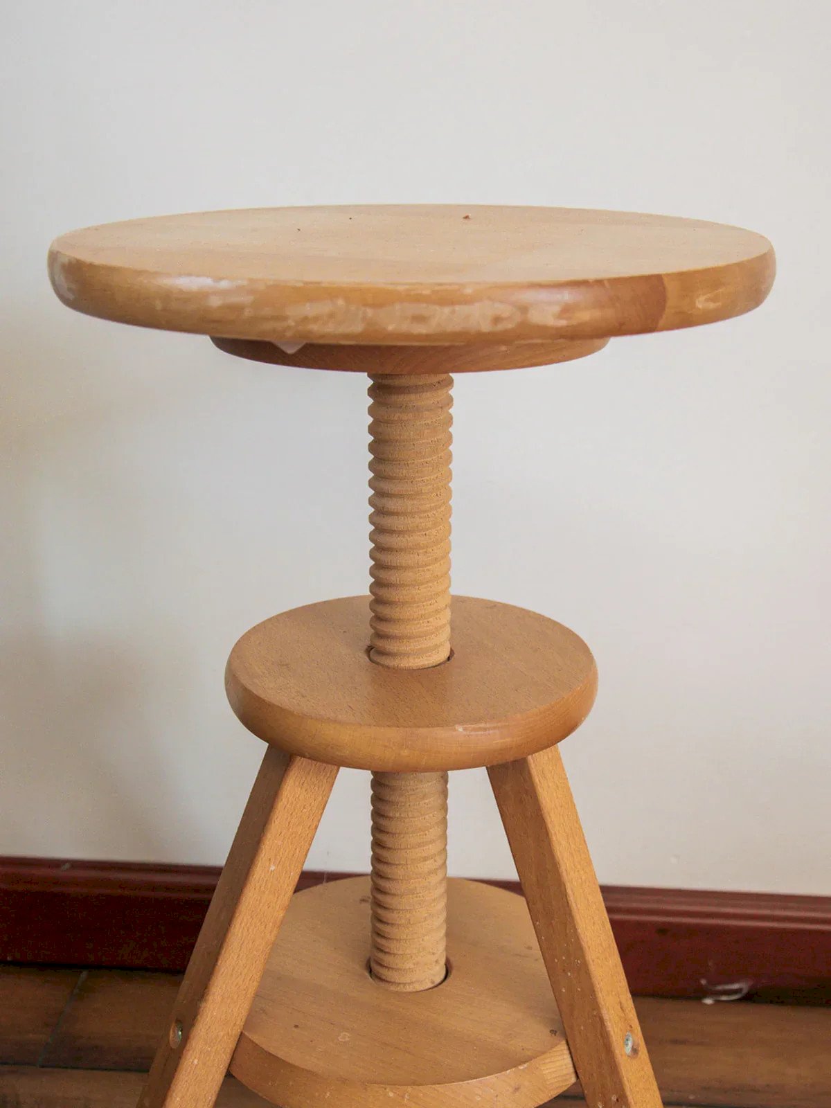 A charming stool that is both simple and well thought out. Height adjustable, it adapts to all desires, whether around an island, a desk, or at the end of a sofa. Its light wood, weathered by time, gives it that little extra soul that we love so much. A piece as pretty as it is practical, to slip anywhere in the house. Maximum height: 58 cm Minimum height: 43 cm Diameter: 30 cm Condition: Used: Item has been used. Item shows some signs of superficial wear... Used: Item has been used. Item shows some signs of superficial wear, fully operational and functioning correctly. It may be a demonstration model or an item returned to the store after a short period of use. Any imperfections. Color: Multicolored Height: Contemporary Width: Wood Length: Low stools Brand: Debongout Type: Vintage product Material: Wood Style: Contemporary Assembly required: No Assembly level: Fully assembled
