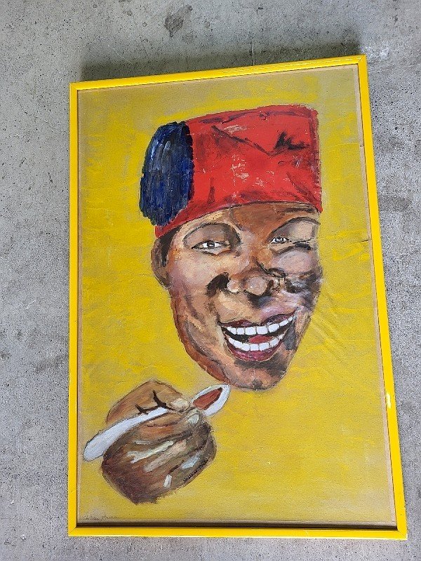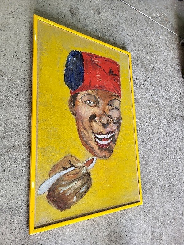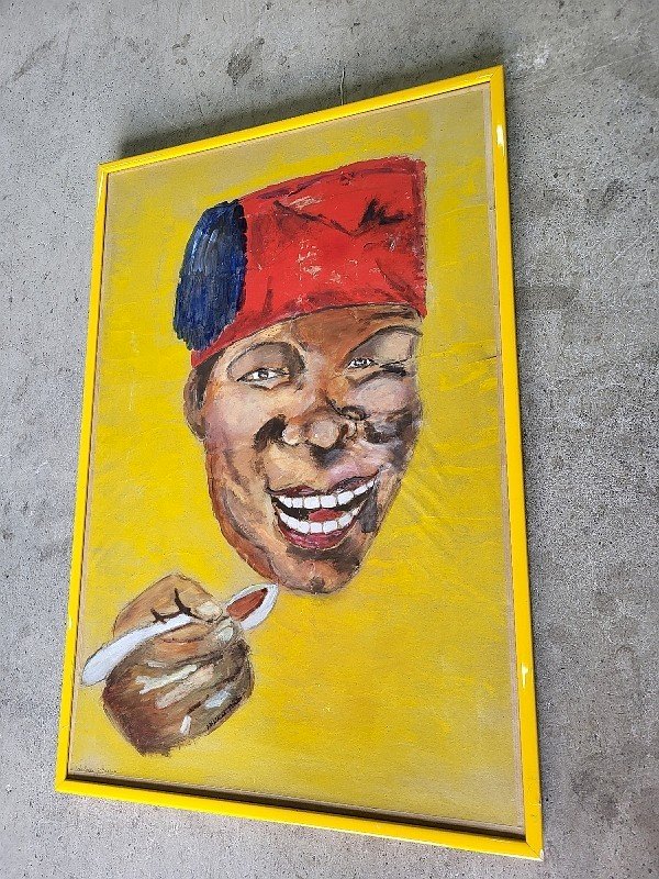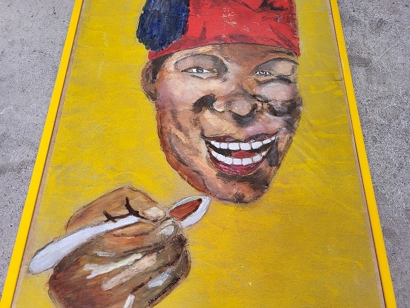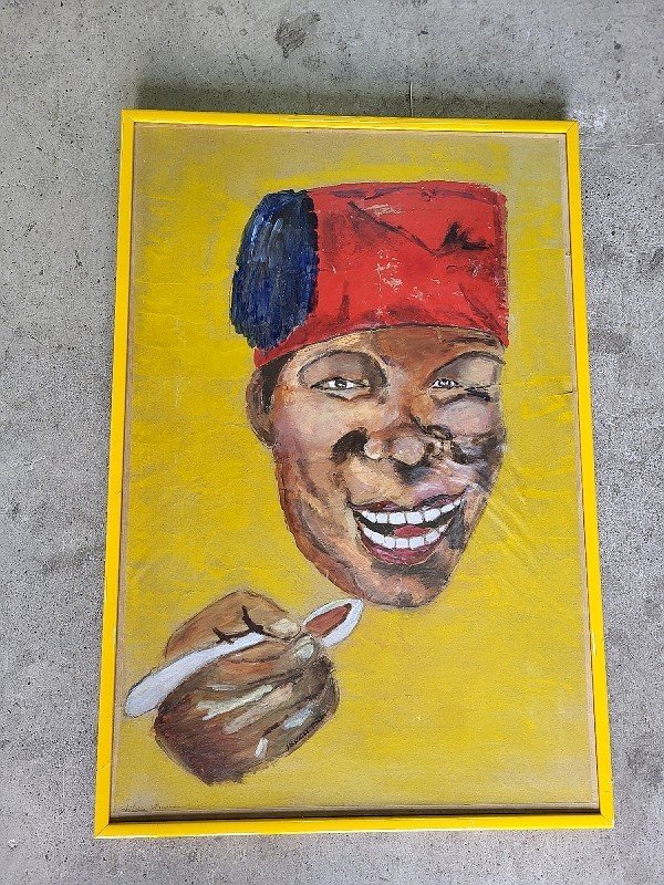 Superb painting Banania signed by Skistaine Poulle, it is in good condition with just a few small blisters from the glue. It is an oil painting on paper glued to canvas. The frame measures 53 cm wide by 78.5 cm high, and the painting measures 49 cm wide by 74.5 cm high. Type: Oil. Features: Framed, Signed, On canvas. Theme: Character.