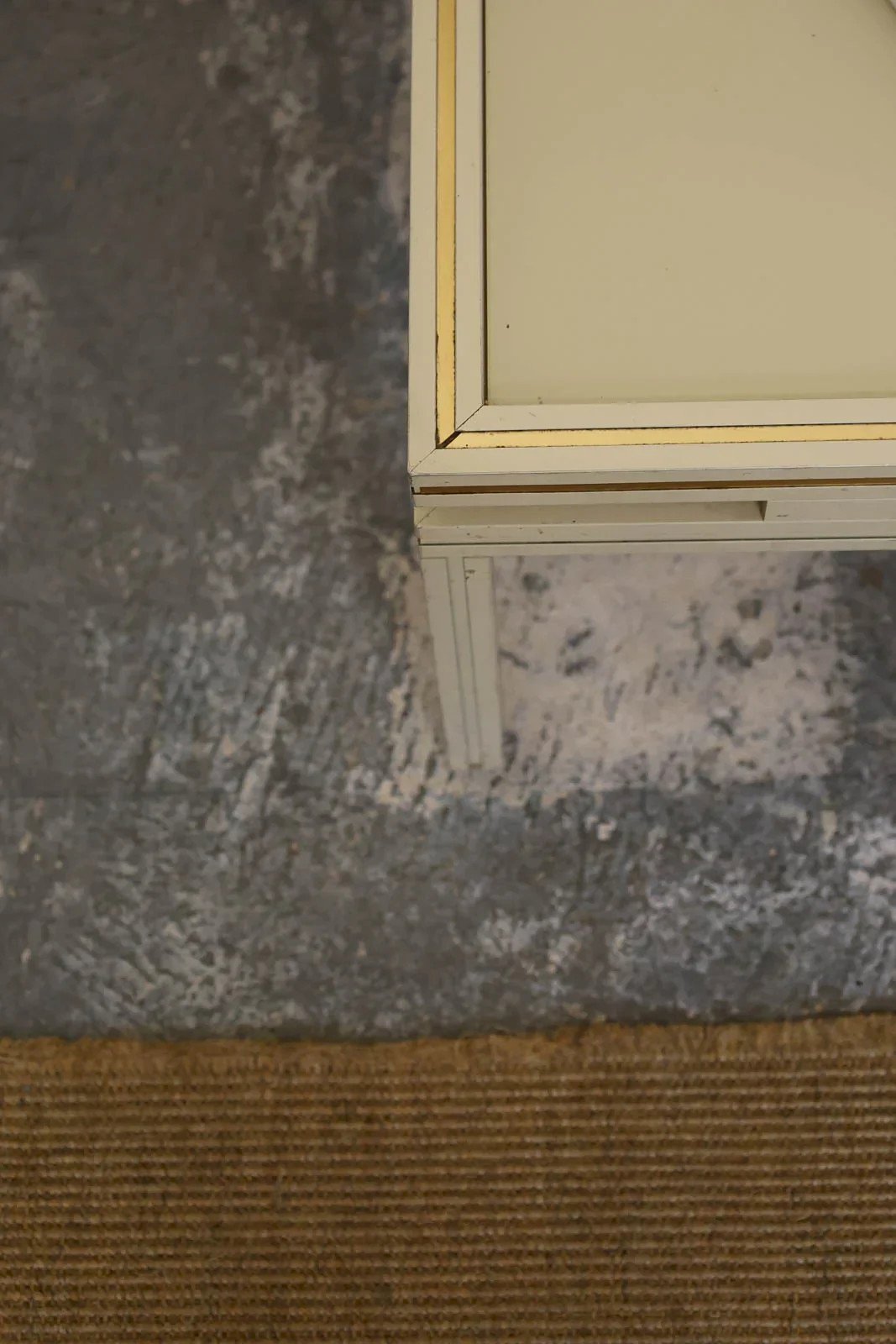 Adopt these 1970s nesting tables dressed in Vandel stone in ivory color, enhanced with an elegant brass trim and ivory-toned glass tops. Their nesting design, featuring a pull-out table, offers practical modularity for hosting drinks, lamps, or decorative objects while freeing up space when needed, and their discreet proportions blend easily into a contemporary or vintage living room. Light signs of wear and a small chip on a glass top. Size M: Length: 105 cm Width: 54 cm Height: 32 cm Size S: Length: 47.5 cm Width: 54 cm Height: 29.5 cm Condition: Used: Item has been used. Item shows some superficial wear marks, fully operational and functioning correctly. It may be a display model or an item returned to the store after a short period of use. Any imperfections. Brand: Debongout Type: Vintage product Material: Stone, Glass, Brass Style: Contemporary Customized: Nesting tables.
