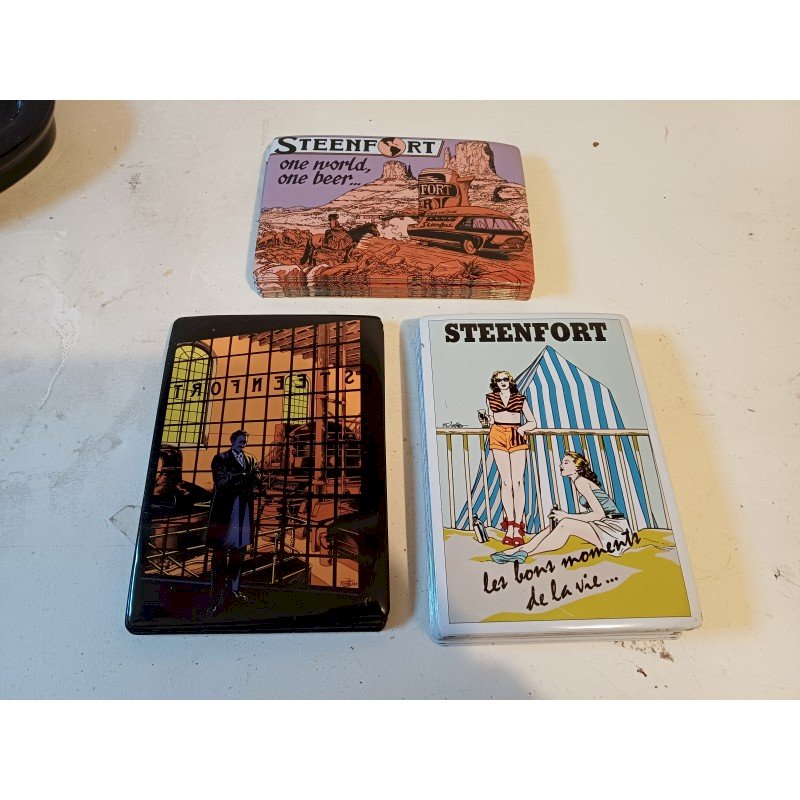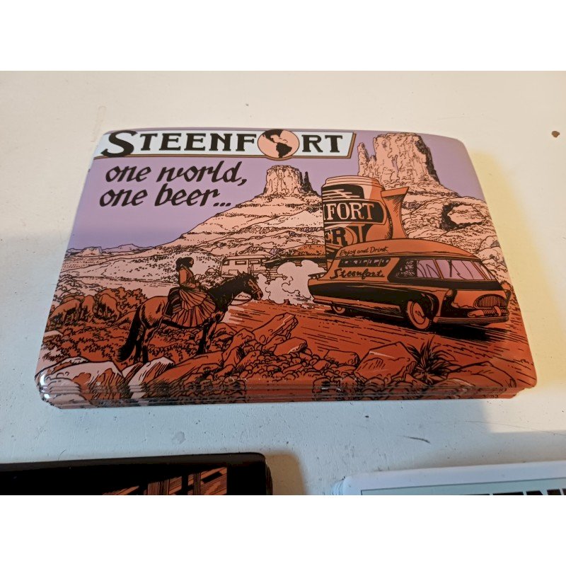 Batch of 56 Beer Steenford Tin Advertising Signs, Dimensions of each piece: 20 cm by 15 cm, Total weight: 3.6 kg, the price in the advertisement is for the batch of 56 pieces, very good condition.