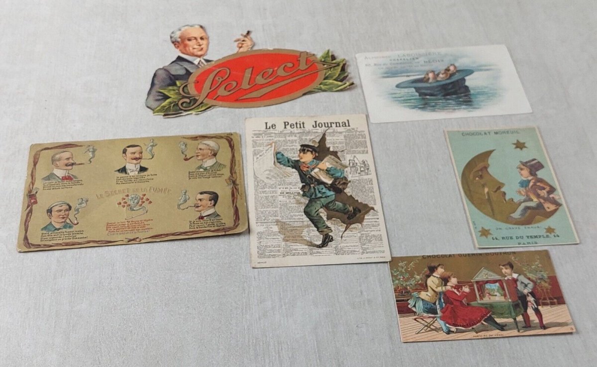 Batch of old cards / chromos / cut-outs, vintage advertising images in good condition, with wear dimensions 14.2 cm X 9 cm see photos. Check my other items! Shipping cost reduction for bulk purchases Condition: Used Item that has been used. any imperfections.