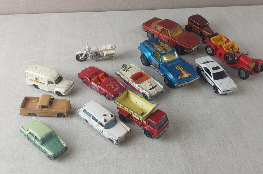 Lot of vintage metal cars, Matchbox, vintage K55 Corvette Caper Cart 1912 Simplex K81/K48 350 SLC Mercedes Thunderbirds Matchbox Grit Spreading Truck, Matchbox S&S Cadillac ambulance Lomas Ambulance Austin A55 Cambridge Commer Pick Up MK VIII Dodge Challenger Mattel Hot Wheels Alfa Romeo Spider, Lone Star Impy see photos Check out my other items! Shipping discount for combined purchases Condition: Used Item that has been used. possible imperfections. Vehicle type: Car Brand: Matchbox Material: Metal