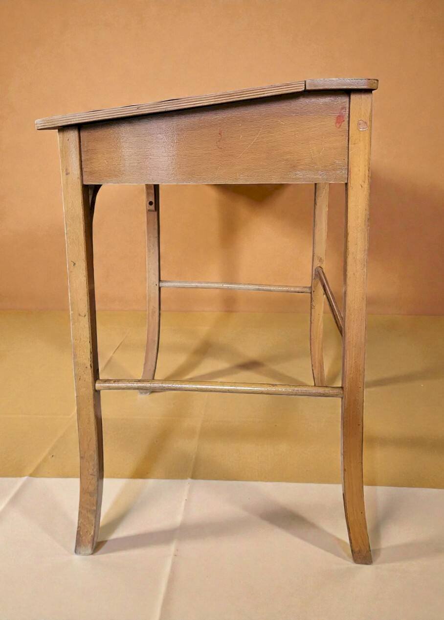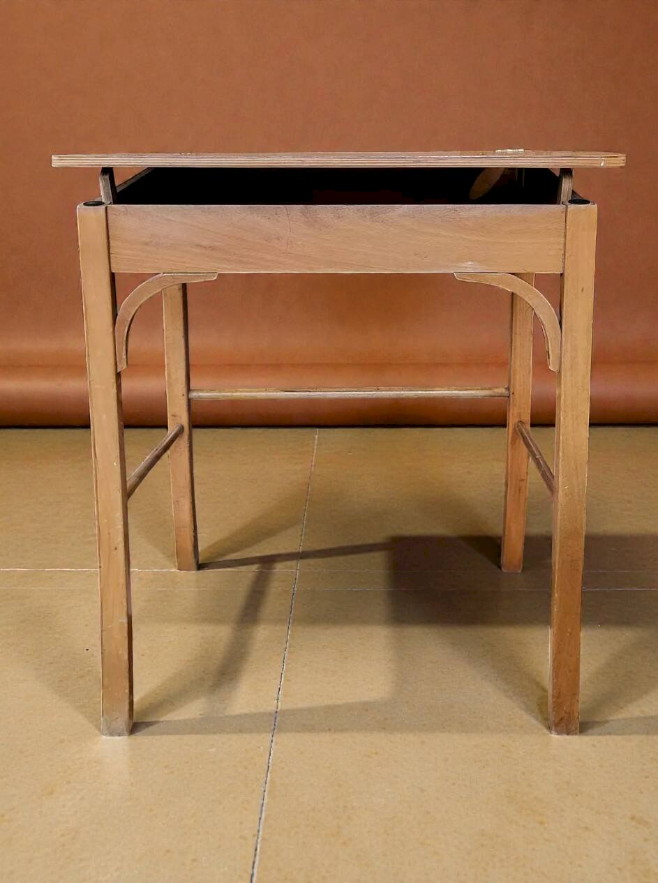 Baumann Child Desk 1950-60's / Beech. One of the classics of children's furniture, the Baumann desk... This desk has its inkpot, made of glass. It is in good condition, stable and sturdy.