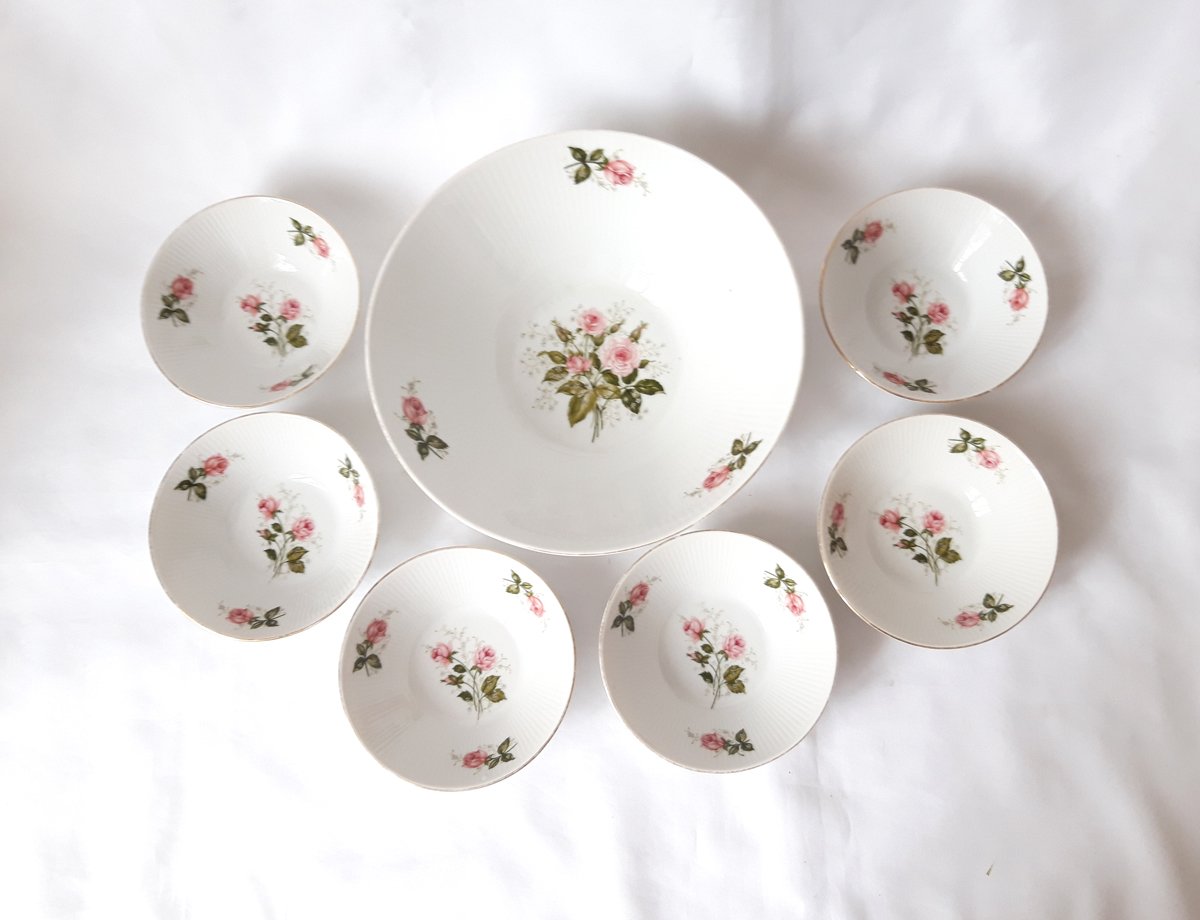 Composed of a serving bowl and 6 matching ramekins.