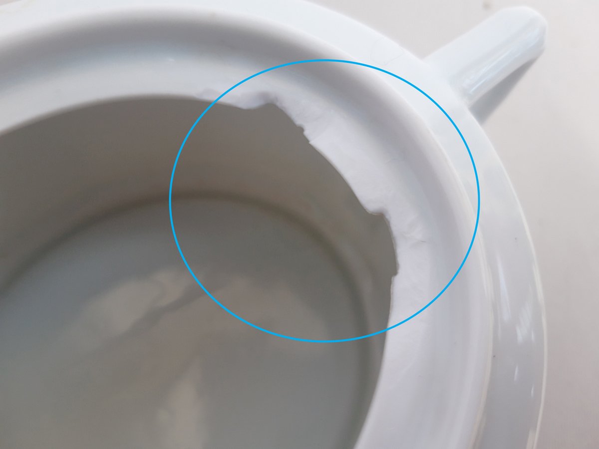 In impeccable external condition. Chip on the inner edge of the sugar bowl (see close-up photo).