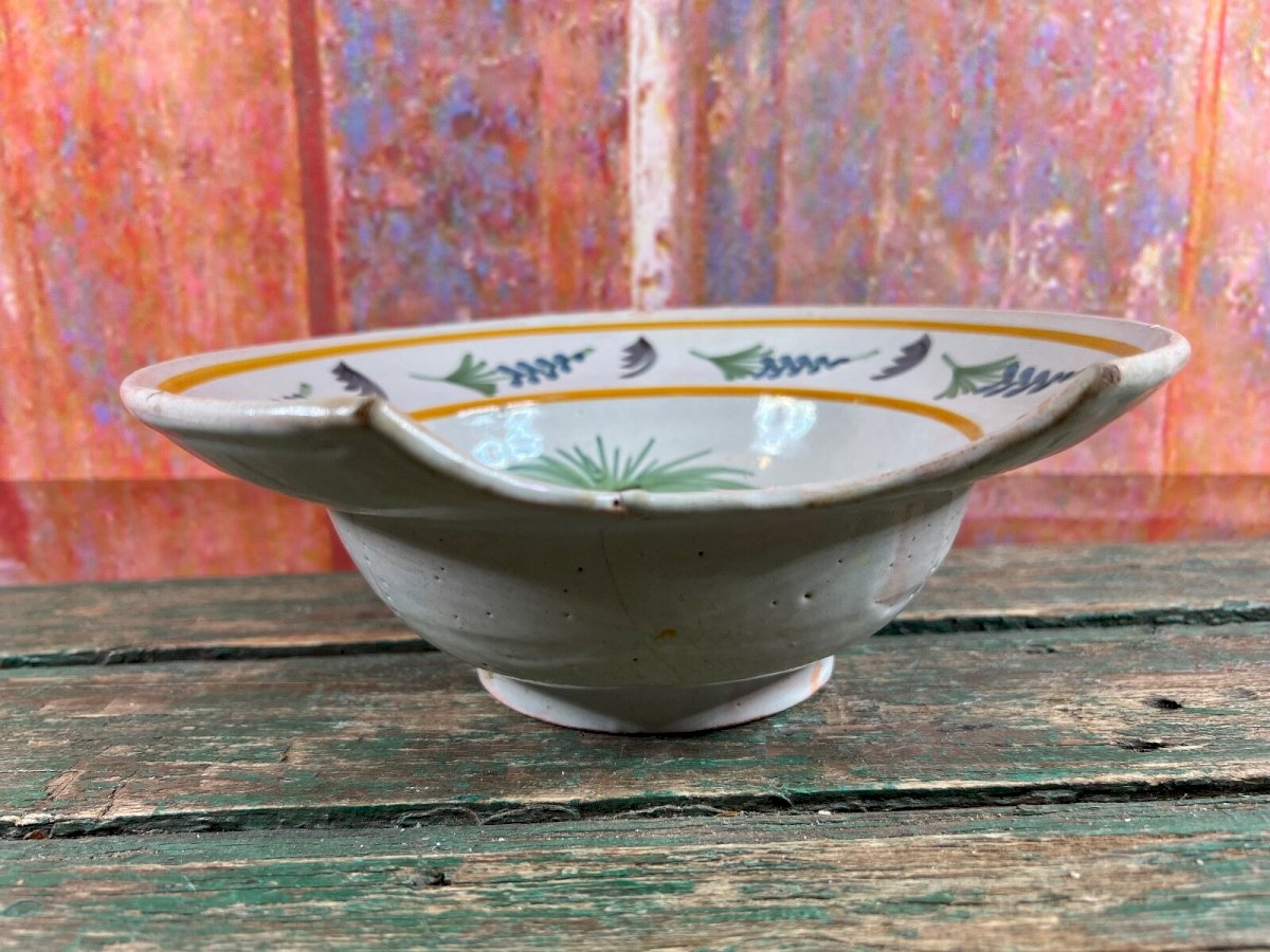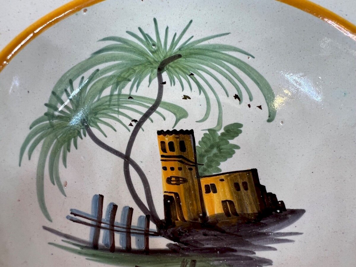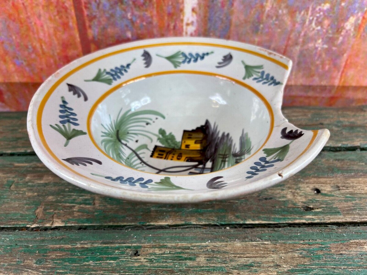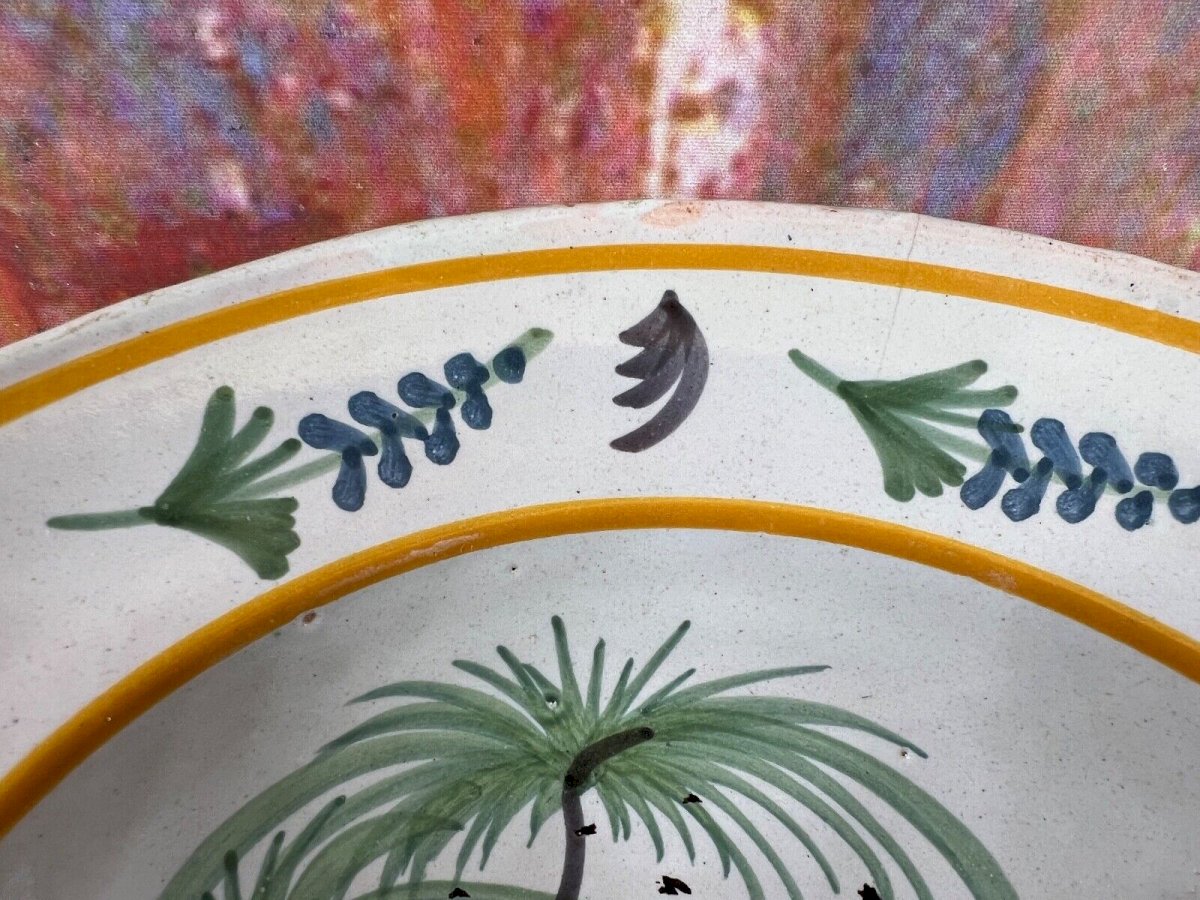 Beard dish Nevers 19th century earthenware decorated with a blue palm tree castle from the 19th century