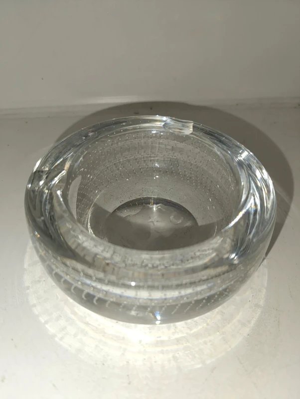 Very beautiful glass empty pocket with blue inlay attributed to the SEA Glasbruk factory in Sweden in good condition